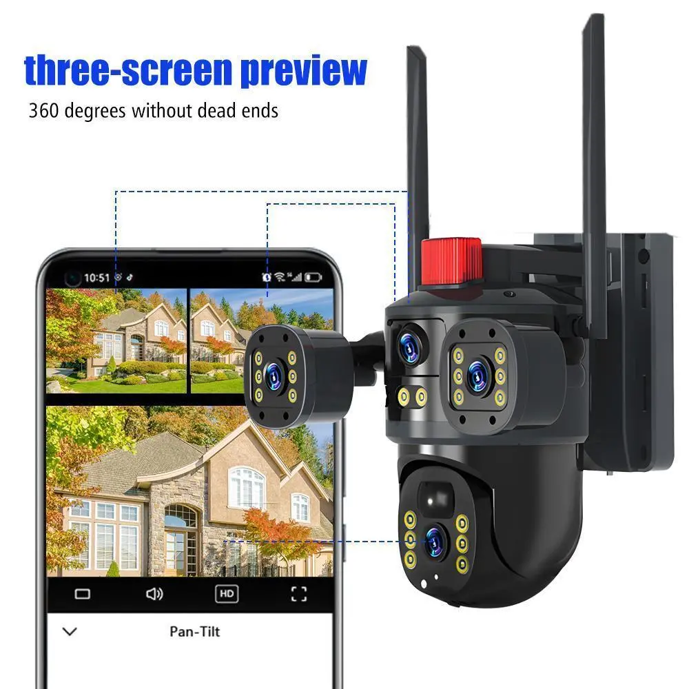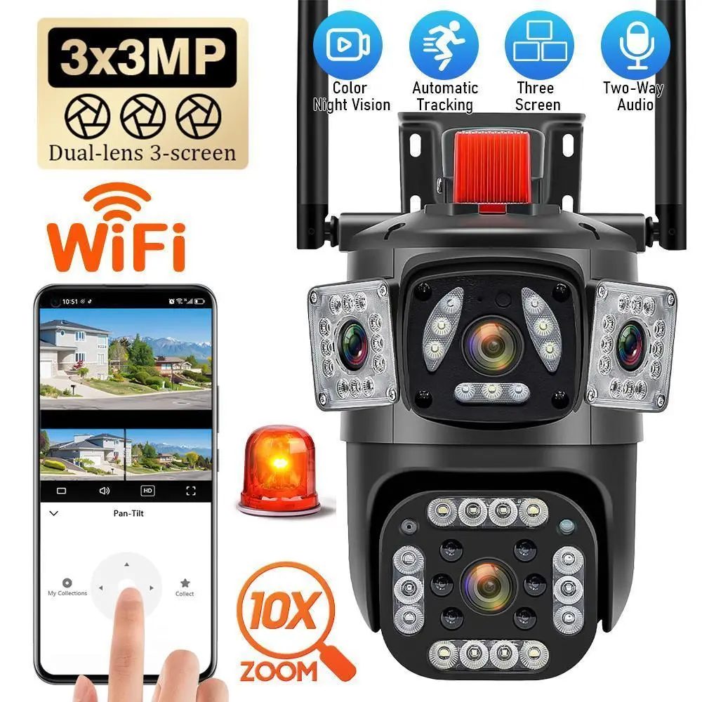 Outdoor Security Camera: 3 Lens 6K 9MP 360 PTZ WiFi Camera