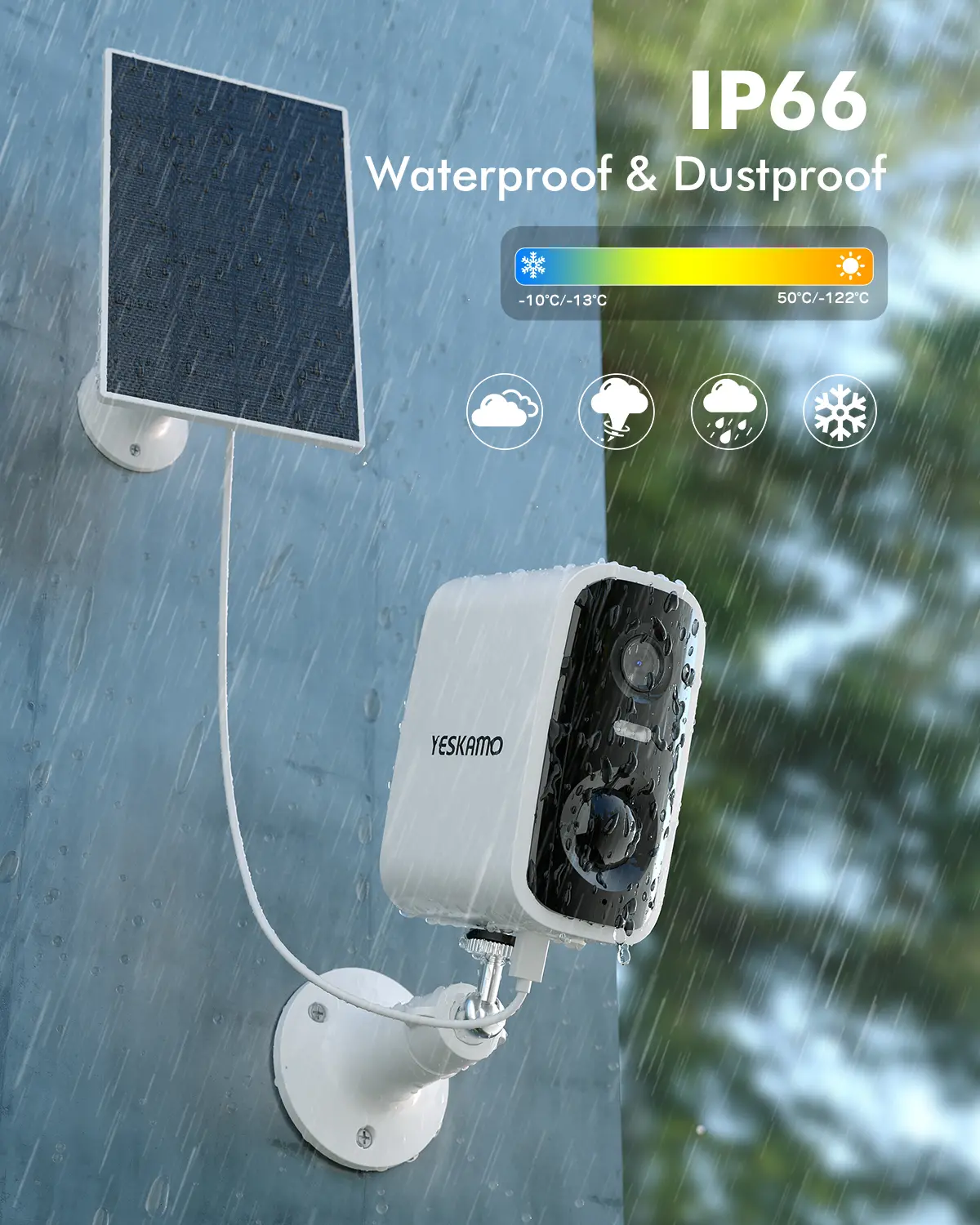·【IP66 Weatherproof & Multifunction】Our surveillance camera is made of high molecular polyester material, which can well resist all kinds of bad weather and protect your family at all times. In addition, the camera also has a two-way talk function, which allows you to talk directly to the person under the camera. Share with your family, view multiple cameras at the same time, keep an eye on who or what is important.