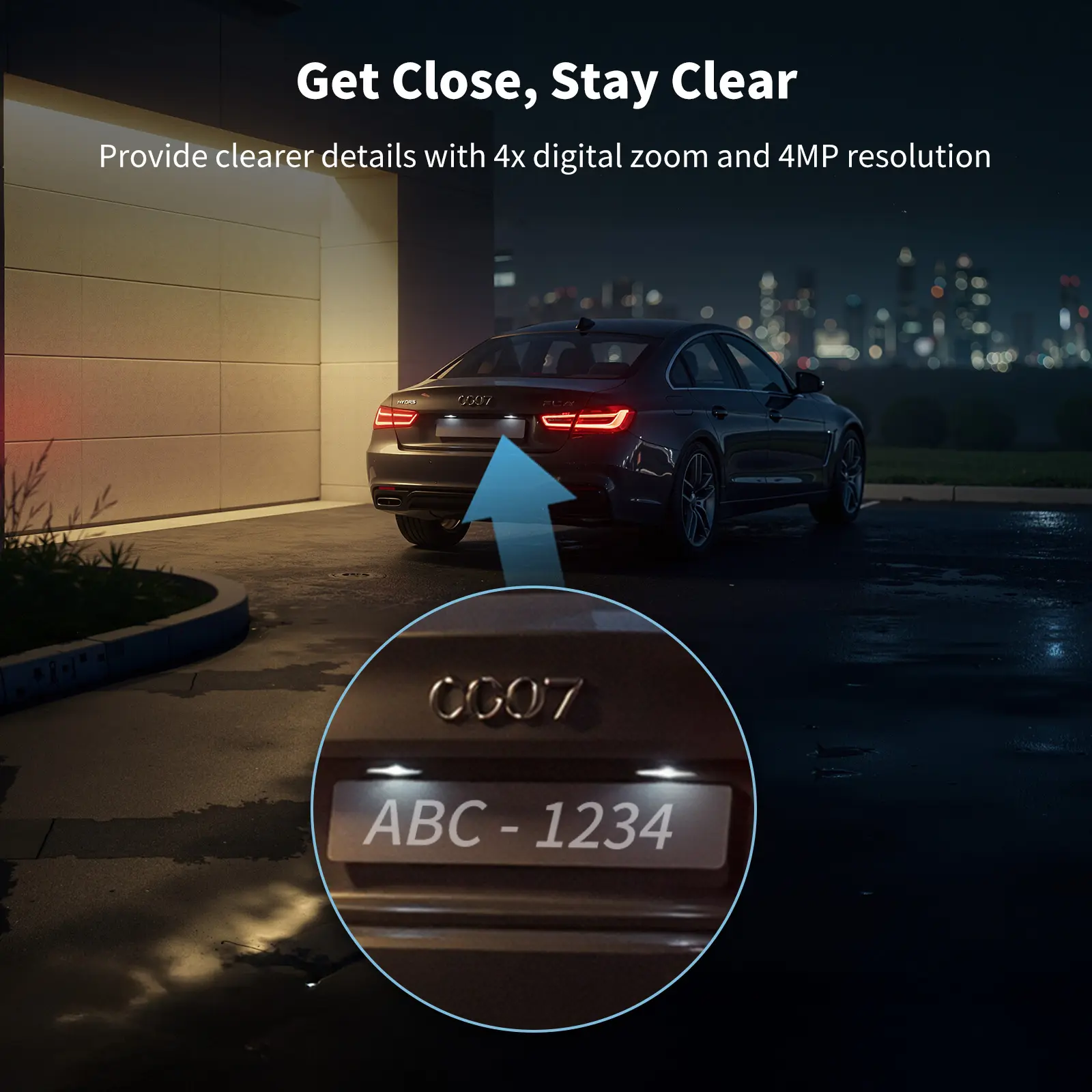 Pan-tilt 360° coverage, 2K HD resolution, spotlight color night vision. Customize detection area, sensitivity and alert schedule via app.