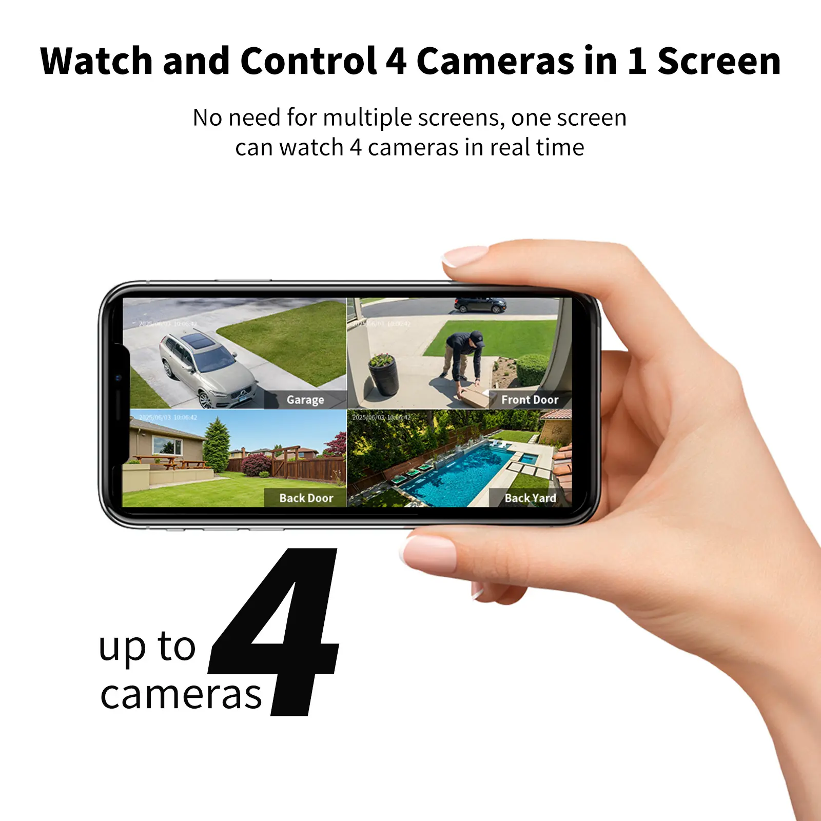 Base station connects via Ethernet for stable signal. Cameras link through dedicated channel, less burden on your router. Dual band 2.4G + 5G for faster, stronger, more reliable connection.