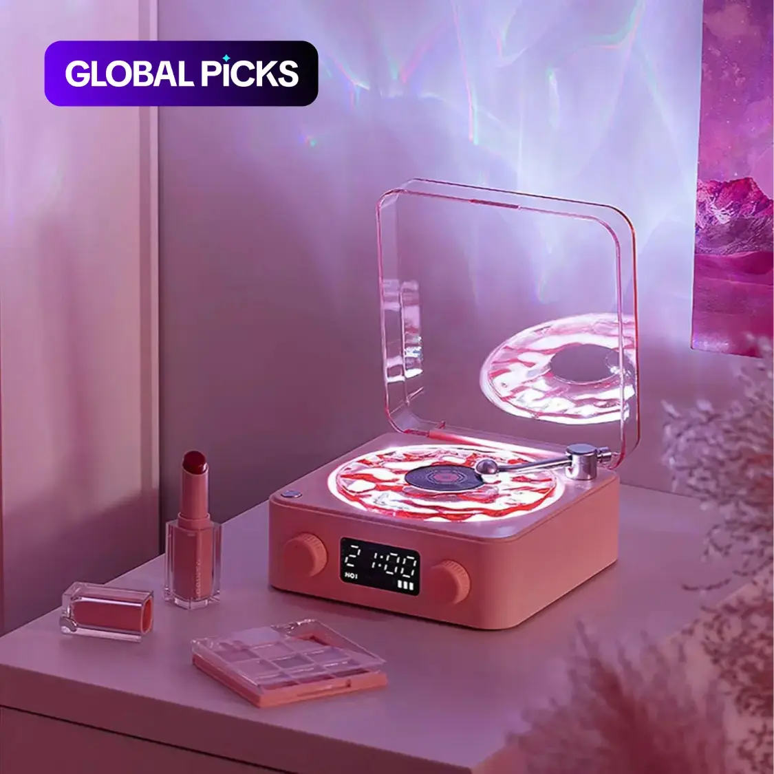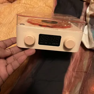 Literally so COOL! This has white noise, Bluetooth, aux, and AN ALARM CLOCK? Plus a night light. My 8 year old is thrilled. I can play my records, and she can listen to hers 😉🙌🏻