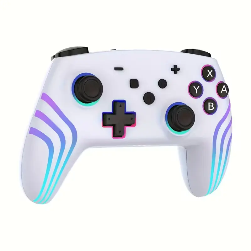 Wireless switch controller with motion sensing, 6-axis gyroscope, turbo function, RGB lighting, and wireless connectivity