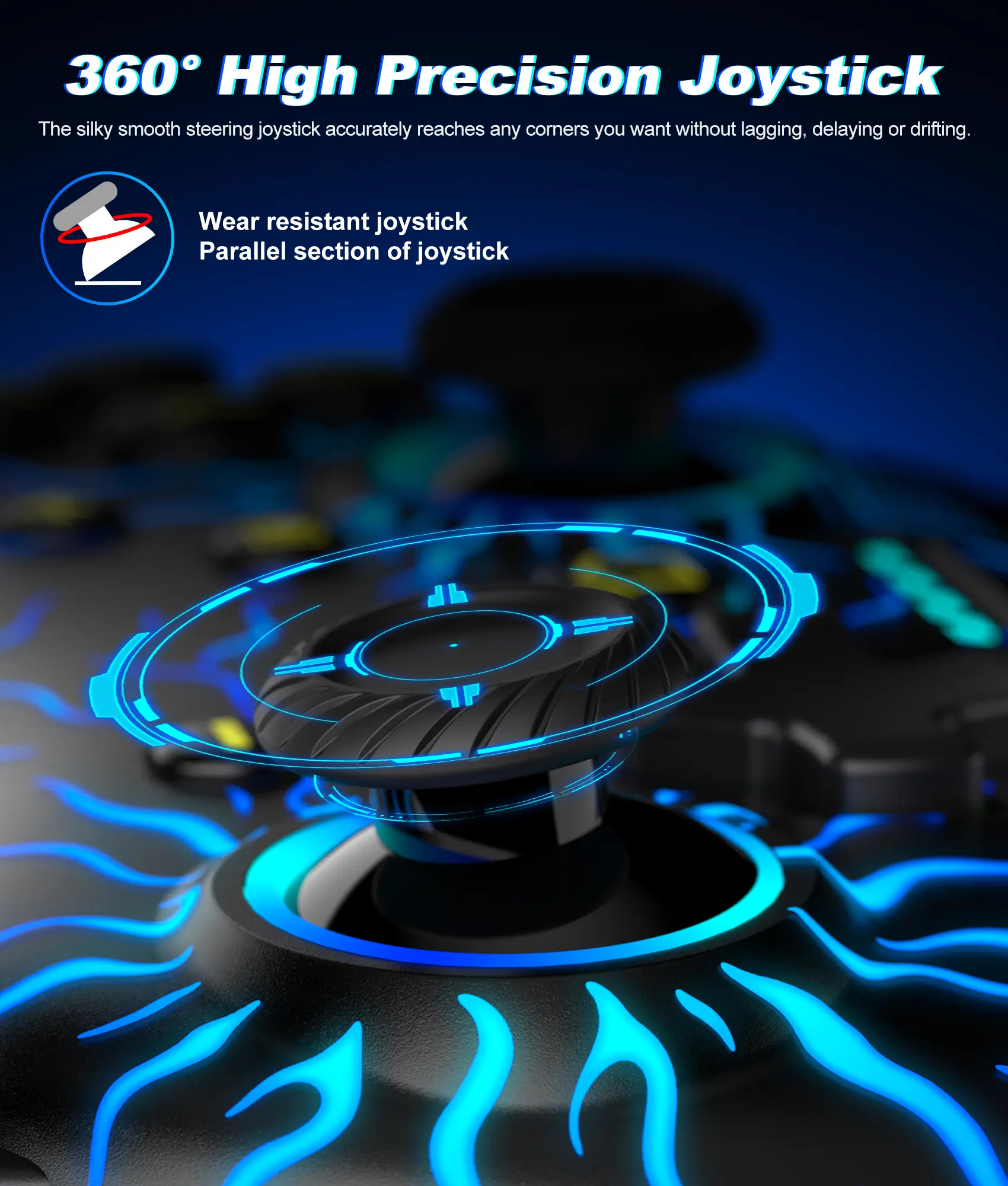 Features customizable RGB lighting with 9 colors, 4 blinking modes, and 3 brightness levels, adding a touch of gaming technology and immersion. The controller includes an 800mAh rechargeable battery that charges in 3 hours and provides up to 10 hours of gameplay.