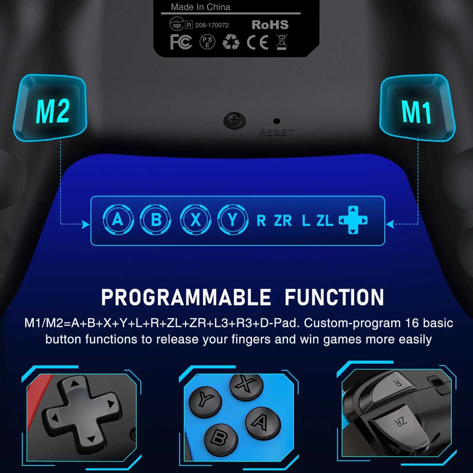 ​【2 Programmable Back Buttons】Equipped with 2 back programmable buttons with single or multi-programming modes. M1/M2 buttons can be mapped to combinations like A+B+Y+L+ZL+R+ZR+D-pad, allowing for more comfortable and centered operation. The programmable buttons help reduce button wear and ensure durability even with heavy use. (Note: NFC function is not supported.)