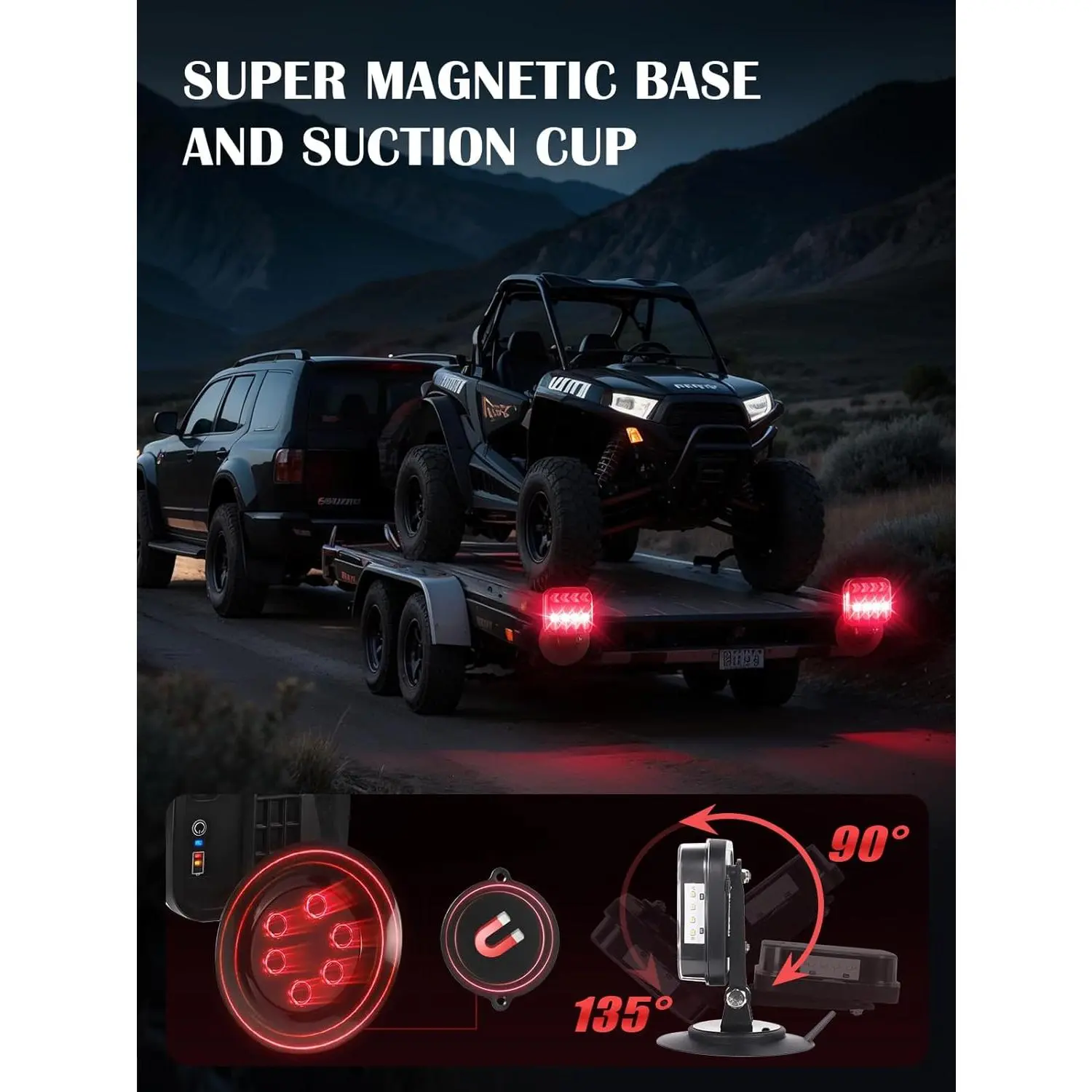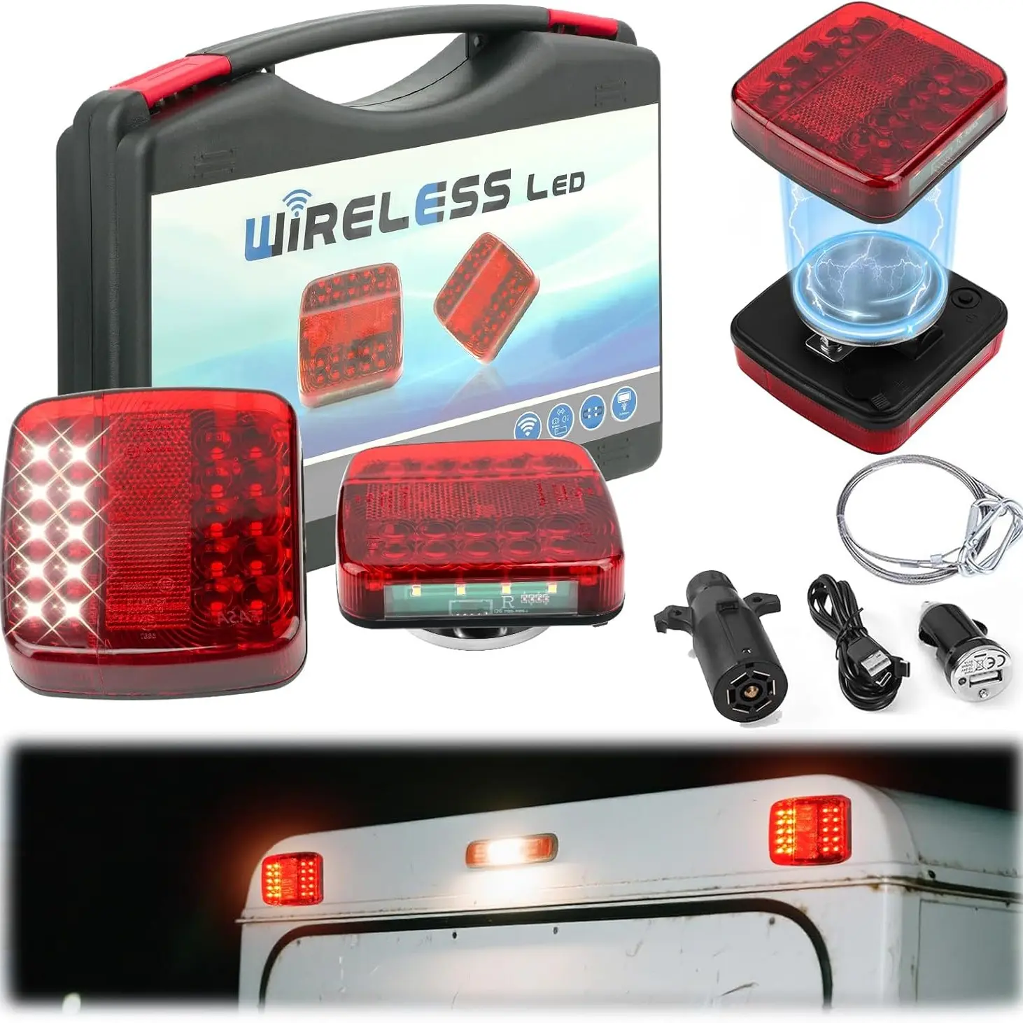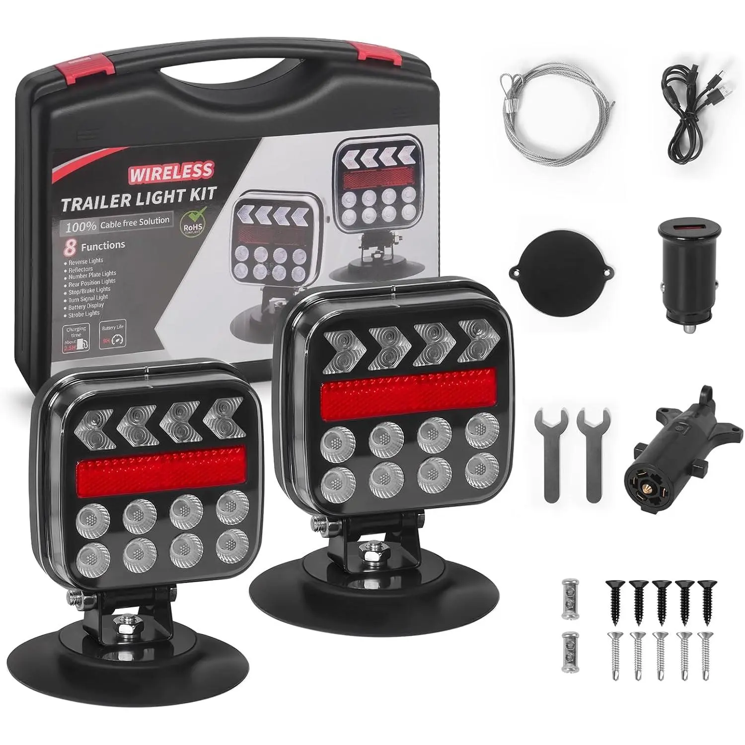 ·Our wireless trailer lights come with a rubber suction cup and magnetic base.