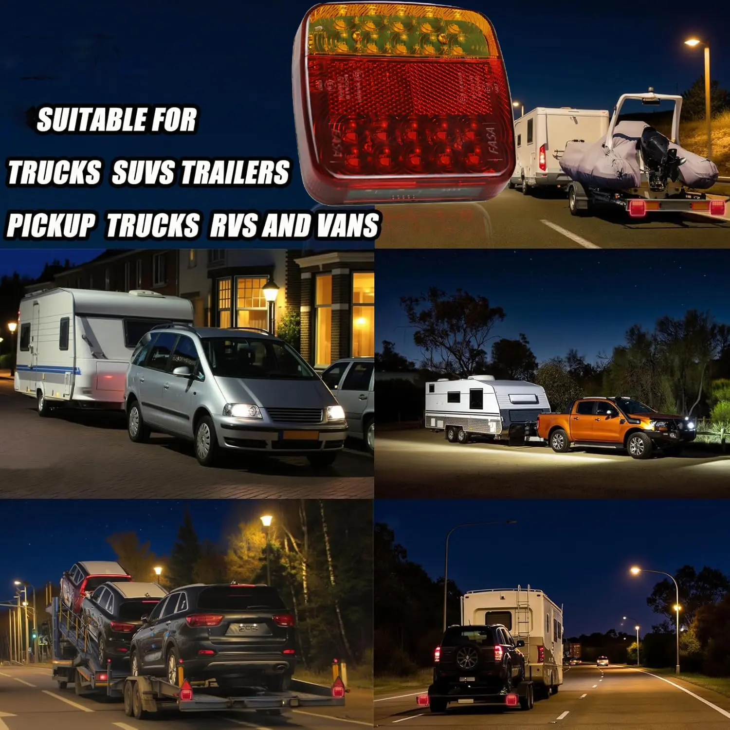 ·Universal Compatibility: The wireless magnetic trailer light is compatible with a wide range of vehicles, including tractors, crawler excavators, SUVs, off-road vehicles, trailers, semi-trailers, and other specialized vehicles. It can also be used for emergency safety warning and different scenarios, offering enhanced practicality. This led trailer light kit integrates turn signals, brake lights, tail lights, and license plate lights, meeting diverse lighting needs. It helps improve driving safety while adding a stylish touch to the vehicle