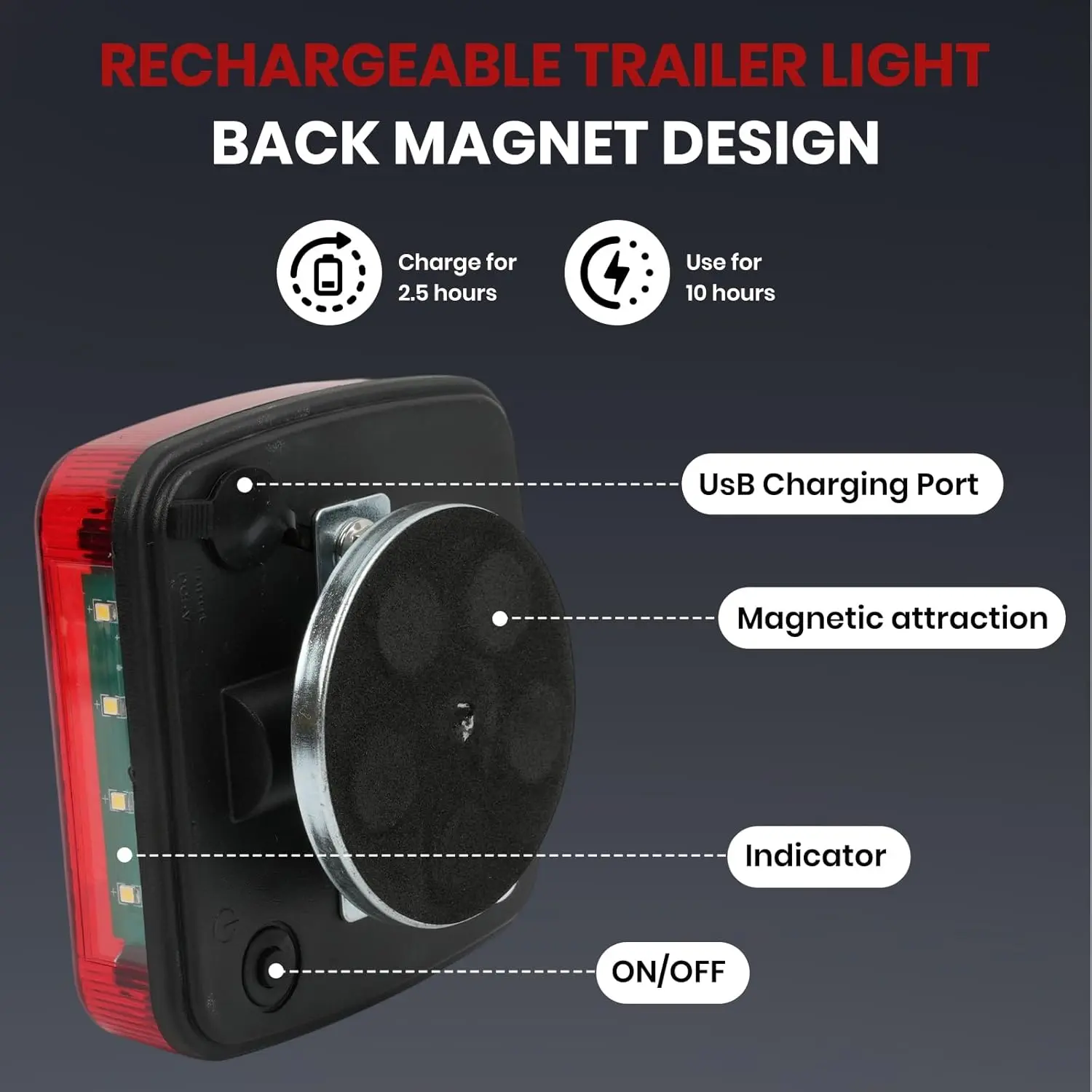 ·Long Battery Life: The upgraded wireless magnetic trailer light provides about 10 hours of continuous operation on a full charge, with a standby time of up to 20 hours.