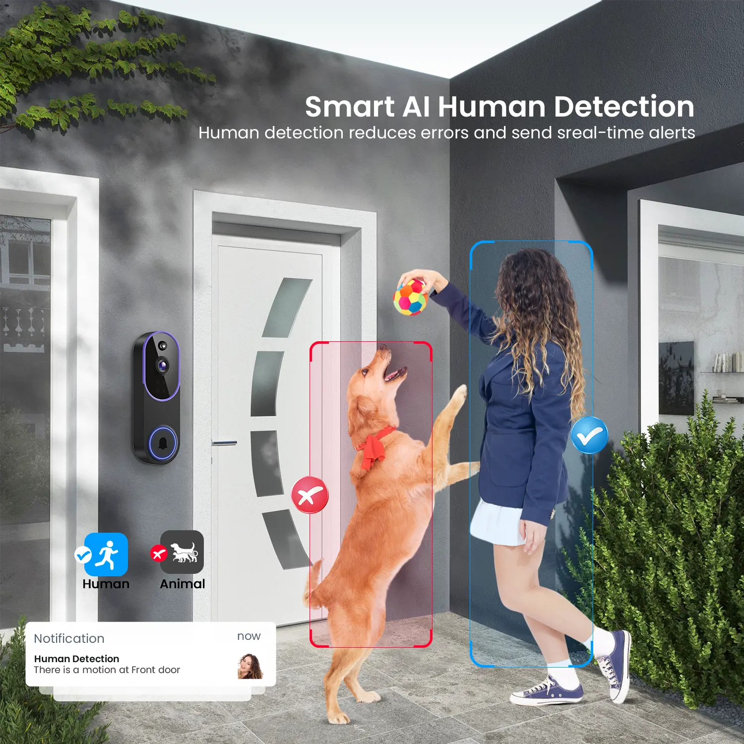 AI-Powered Precision Human Detection: Harness the power of cutting-edge AI technology to accurately recognize human presence, while efficiently ignoring irrelevant motion such as cars and trees.