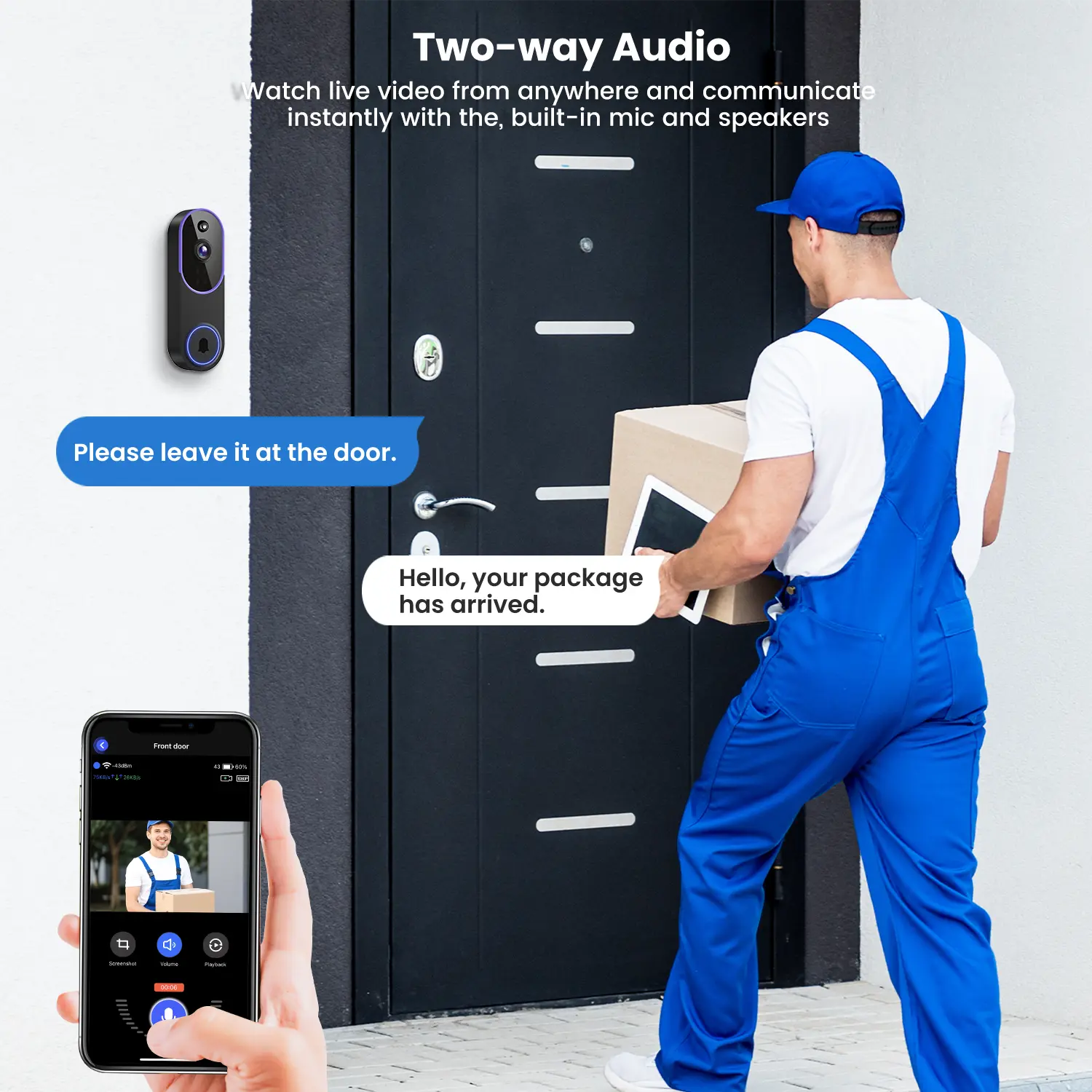 Real-Time Two-Way Communication: Effortlessly engage with visitors from any location, in real-time.