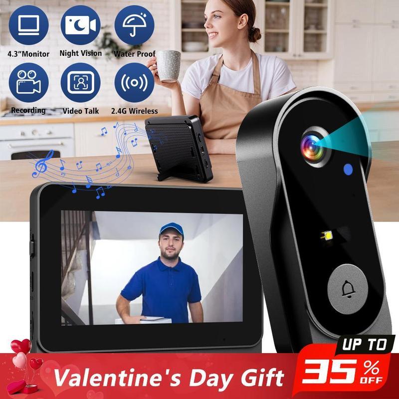Wireless Video Doorbell with 4.3-inch Color Screen, 2.4G Connectivity, Night Vision & Waterproof Design,Long Battery Life,Includes Chime & Accessories,for Valentine’s Day GiftWireless Video Doorbell with 4.3-inch Color Screen, 2.4G Connectivity, Night Vision & Waterproof Design,Long Battery Life,Includes Chime & Accessories,for Valentine’s Day GiftWireless Video Doorbell with 4.3-inch Color Screen, 2.4G Connectivity, Night Vision & Waterproof Design,Long Battery Life,Includes Chime & Accessories,for Valentine’s Day GiftWireless Video Doorbell with 4.3-inch Color Screen, 2.4G Connectivity, Night Vision & Waterproof Design,Long Battery Life,Includes Chime & Accessories,for Valentine’s Day GiftWireless Video Doorbell with 4.3-inch Color Screen, 2.4G Connectivity, Night Vision & Waterproof Design,Long Battery Life,Includes Chime & Accessories,for Valentine’s Day Gift