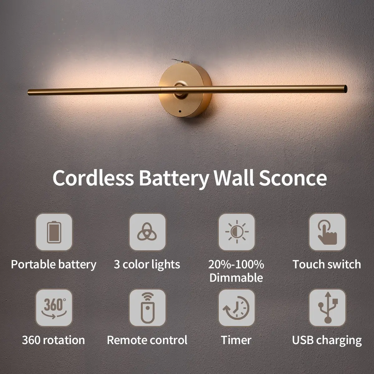 Non drilling installation and detachable, Perfect for renters/Renters Friendly,360 ° rotating creative wireless charging wall lights: no need to remove the entire lamp body/detachable charging battery compartment power supply wall lights/mirror lights