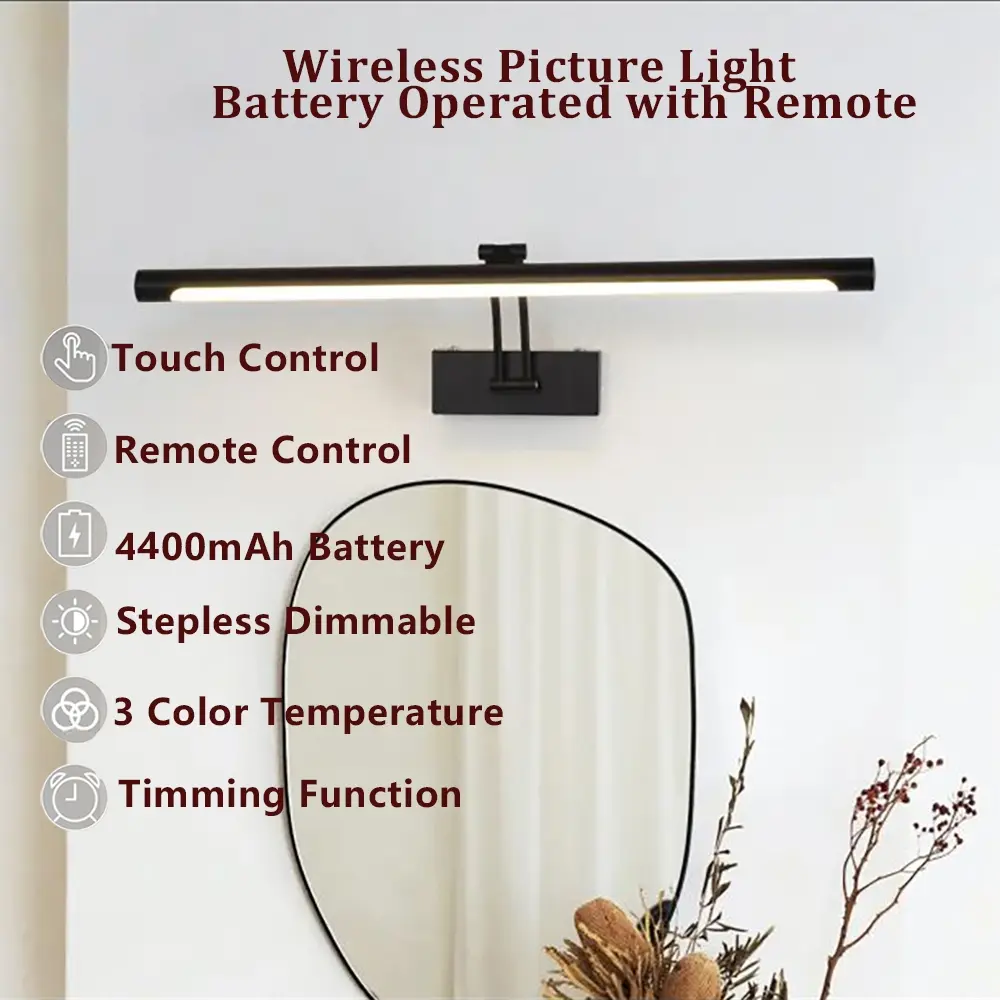 Wireless Wall Picture Light, Adjustable Brightness Art Lighting with Remote Control & Touch Switch, Battery Powered Gallery Lamp, Led Wall Light