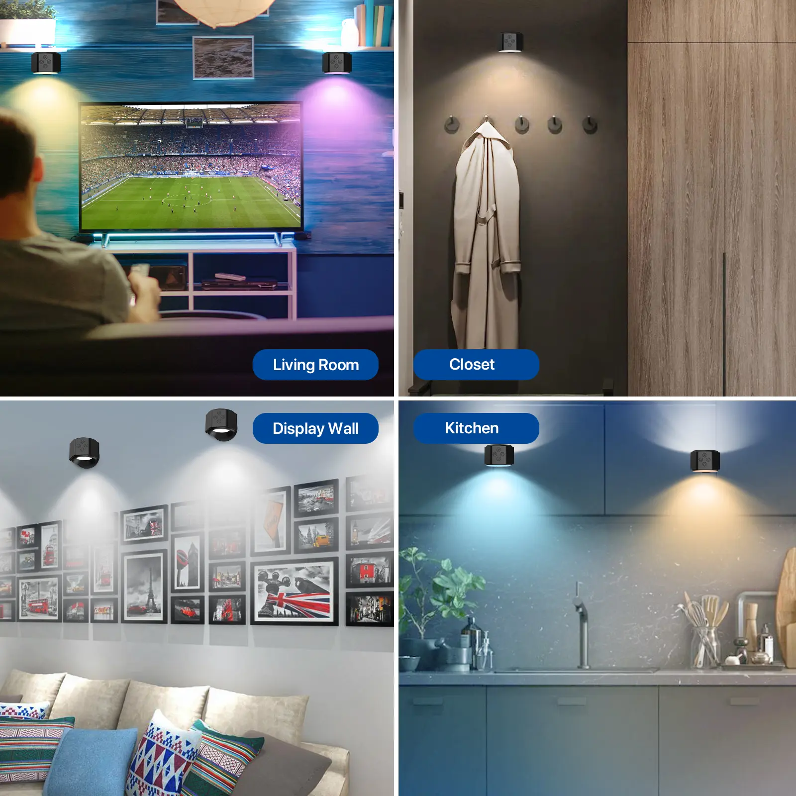This wall sconce features a newly designed dimmable reading light and night light, providing an enhanced visual experience. It offers 9 RGB and 3 color temperature options for ambient lighting, while the night light has 6 brightness levels. The up-and-down lighting combines ambient light and white light, adapting to your mood and setting.