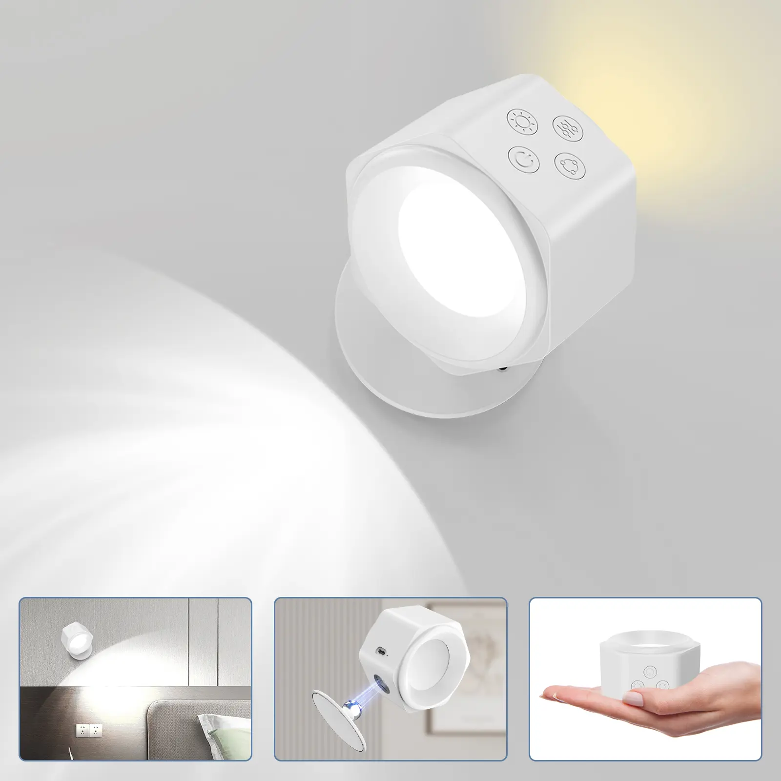 Enjoy the ease of USB charging by simply removing the main light—no wall wiring or battery replacements needed. The sconce offers impressive duration times: 9 hours for RGB + White, 15 hours for RGB only, and 12 hours for White only. This compact bedside wall sconce is designed for flexibility and convenience.