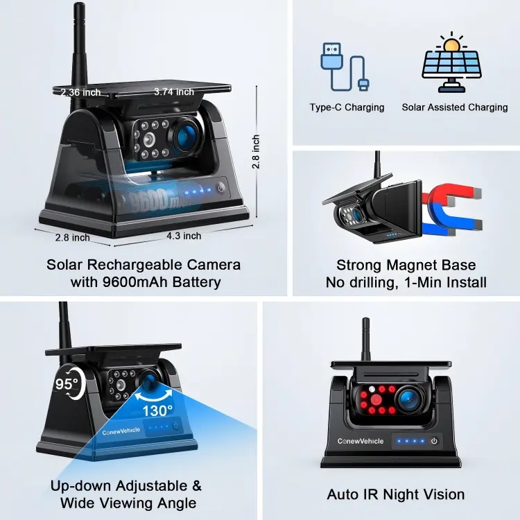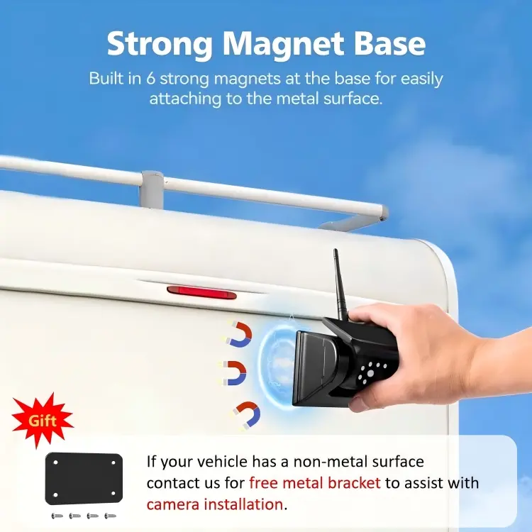 【Wireless & Effortless Installation】No wires needed! This magnetic mount backup camera makes installation quick and easy on any vehicle, including trucks, RVs, and cars. Enjoy a hassle-free DIY setup—ideal for drivers looking for simple solutions.