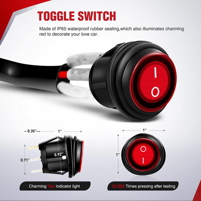 ·Circuit protection: 3 pin on/off rocker switch with Red Indicator light when truing on, easy to turn on or off. Power relay-safety protection and conversion circuit, Blade fuse protects the circuit when over-current or short circuit occurs