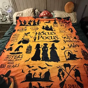 My grandkids loved this soft large blanket! We used it in the house watching the hocus-pocus movie and on the hay rack ride! Its the perfect size!