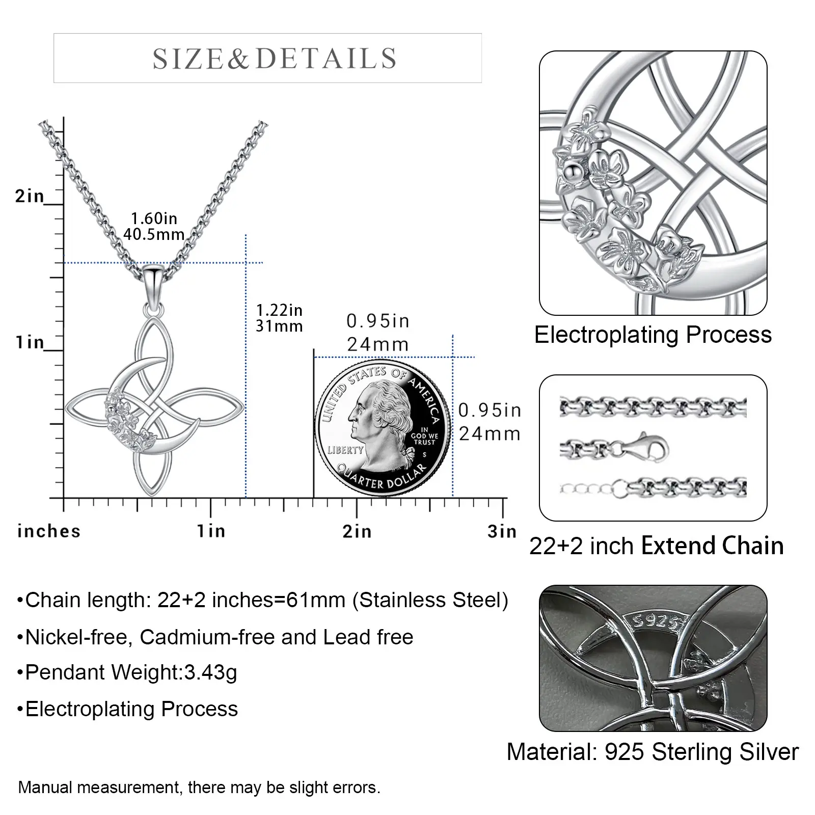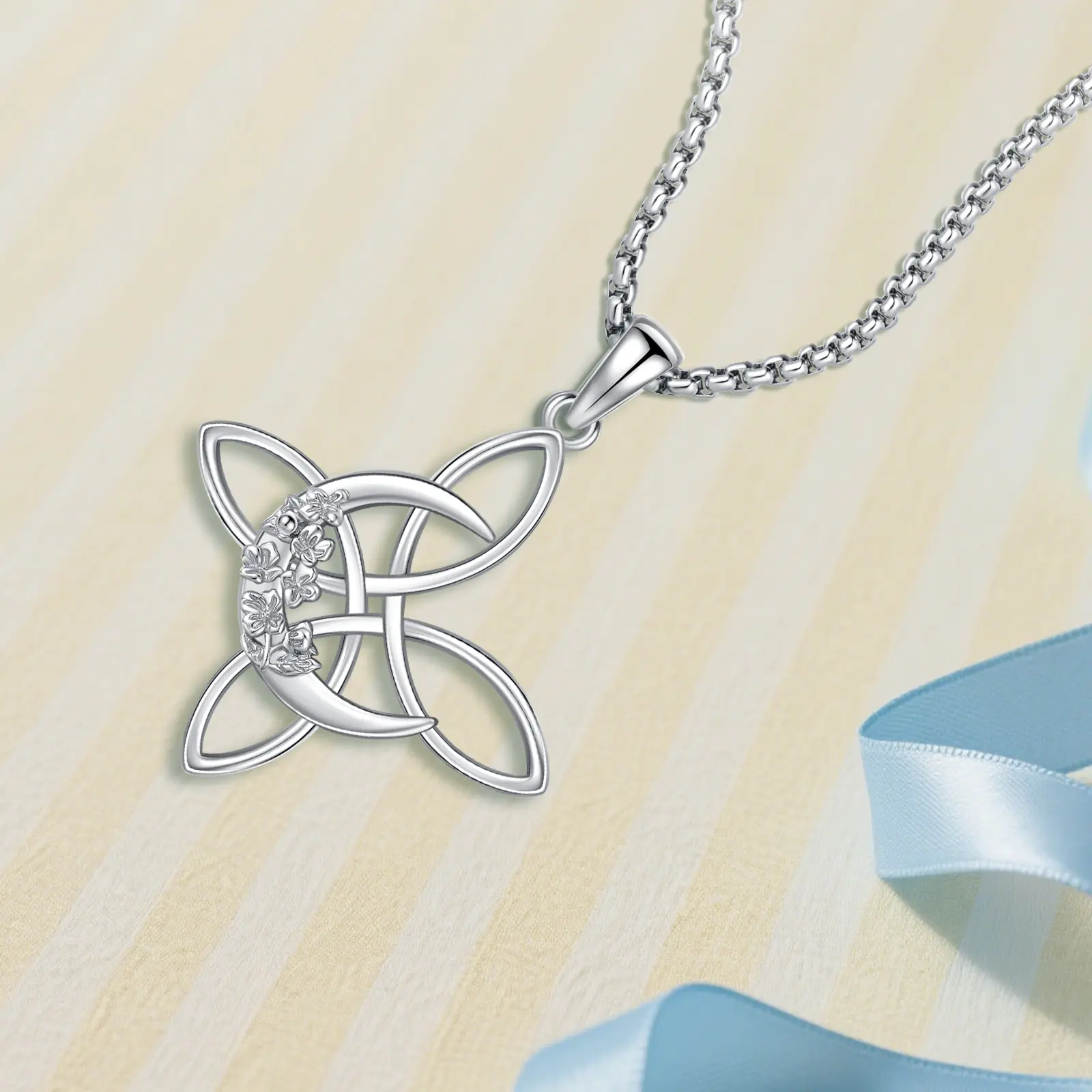 ·Symbolic Witches Knot & Moon Design: Features witches knot (spiritual protection) + moon (nature energy) with floral accents; blends Irish knot culture, tailored for nature/spiritual lovers, stands out from basic necklaces.