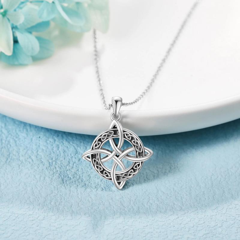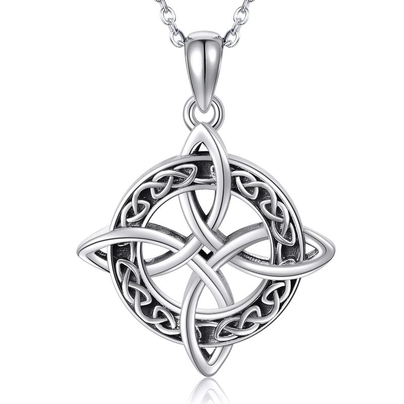 Witches Knot Pendant Necklace Material: The witch's knot necklace is made of 925 sterling silver, oxidized, hypoallergenic, tarnish resistant, nickel-free, lead-free, cadmium-free, suitable for long-term wear.