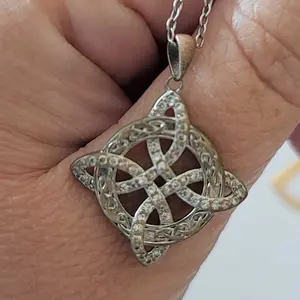 Very disappointed. Can get the same quality out of a gumball machine. The chain is a different tone than the pendant & cheaply made. Pendant itself is pretty/perfect size it is cheap metal covered in Silverstone. Very lightweight. Refund requested