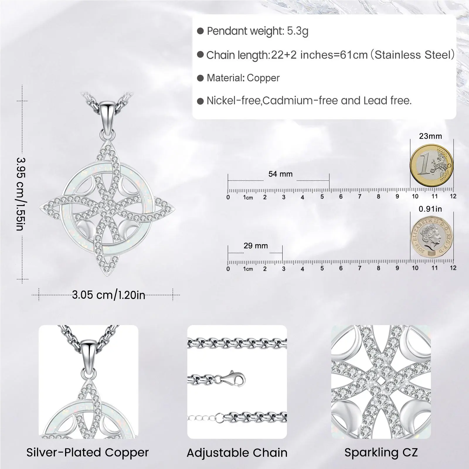 【Material]】 The pendant is made of 925 sterling silver with Opal, nickel-free, lead-free, cadmium-free, and hypoallergenic. Suitable for long-term wear. The Necklace is made of stainless steel.