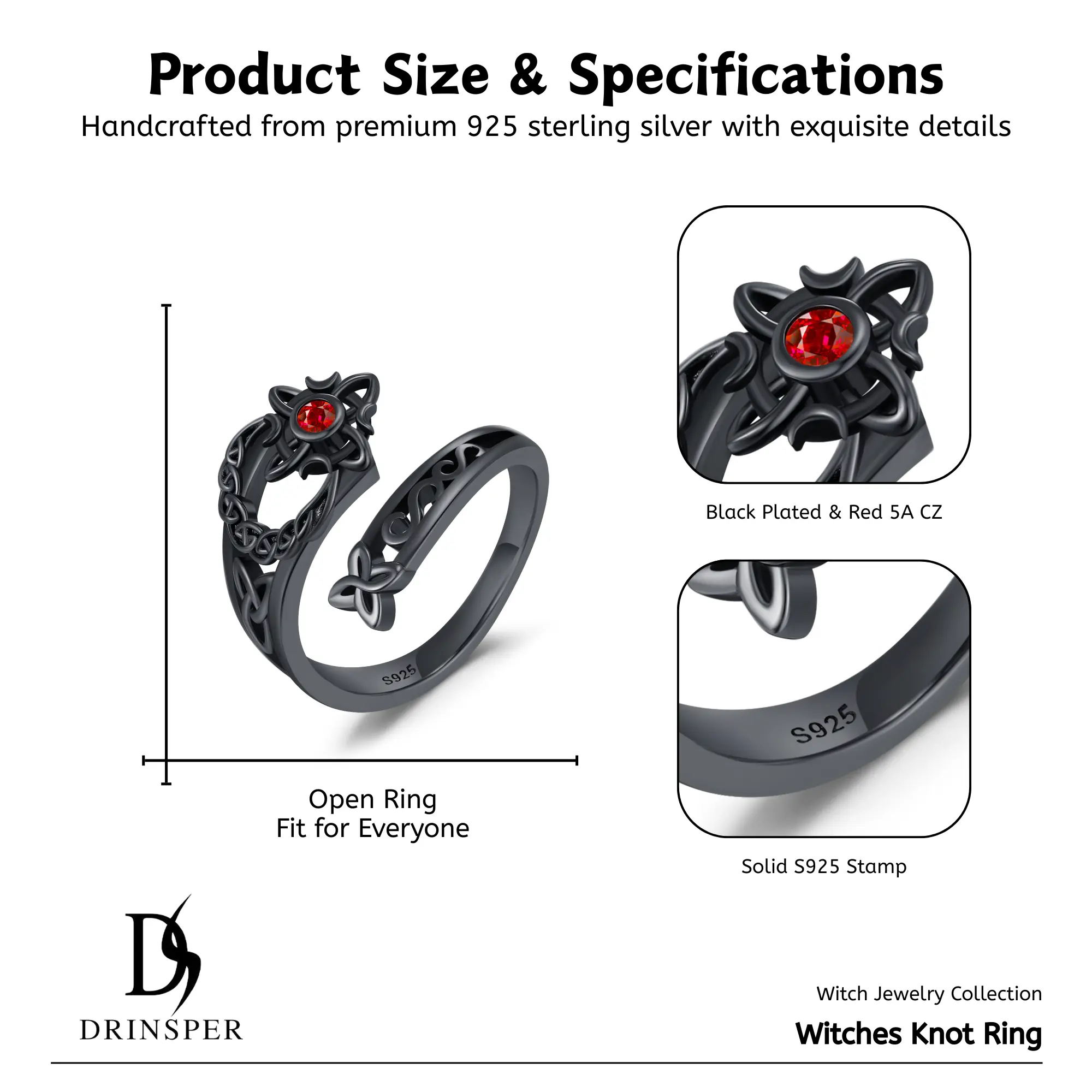 DRINSPER S925 Witches Knot Ring, Celtic Knot Protection Ring, Nudo de Bruja Plata 925 Sterling Silver Witchy Jewelry for Women