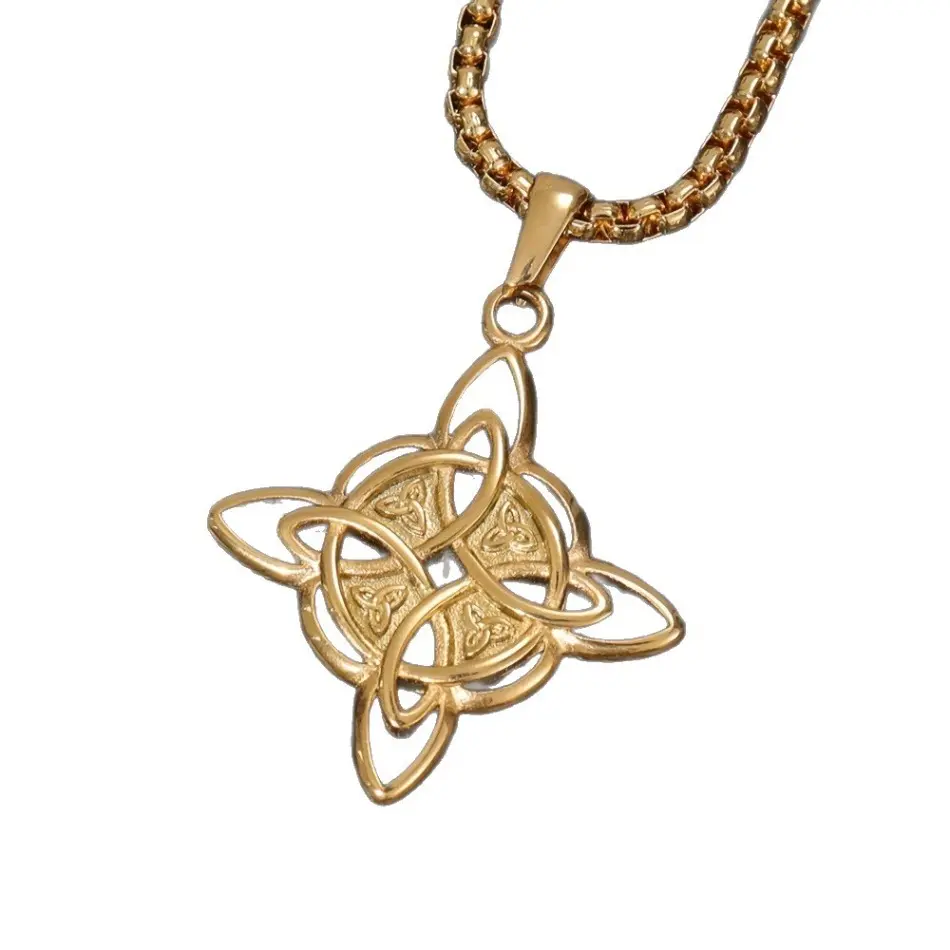 The Witch's Knot Necklace features the iconic Irish Knot, celebrated for its protective symbolism. Its continuous lines represent energy flow, unity, and personal journey. Perfect for those who appreciate Celtic mythology or intricate geometric patterns, this pendant carries deep meaning.