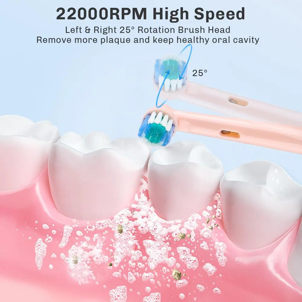 【Unique 25° Brush Head】: The innovative 25° rotating brush head targets plaque and debris in hard-to-reach areas for optimal cleaning.