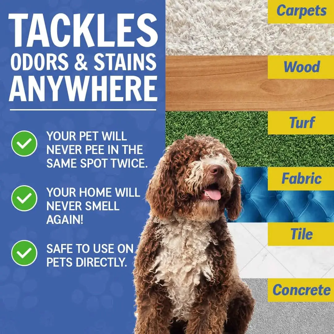 ·[Stain & Odor Eliminator]: Muddy Mat Wizz completely removes stains and odors caused by urine, feces, and various liquids from air, surfaces, and fabrics, without overwhelming perfume scents. From slobber to liquid spills, Wizz handles it all!