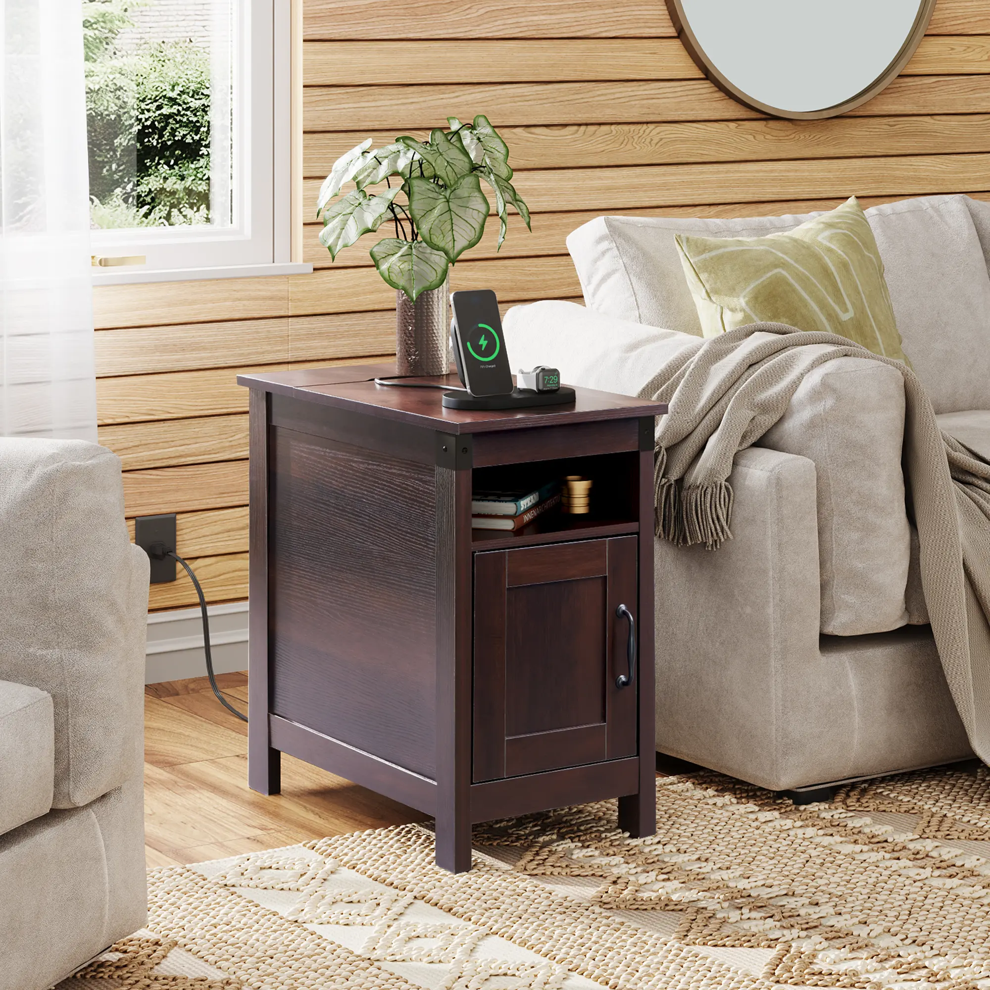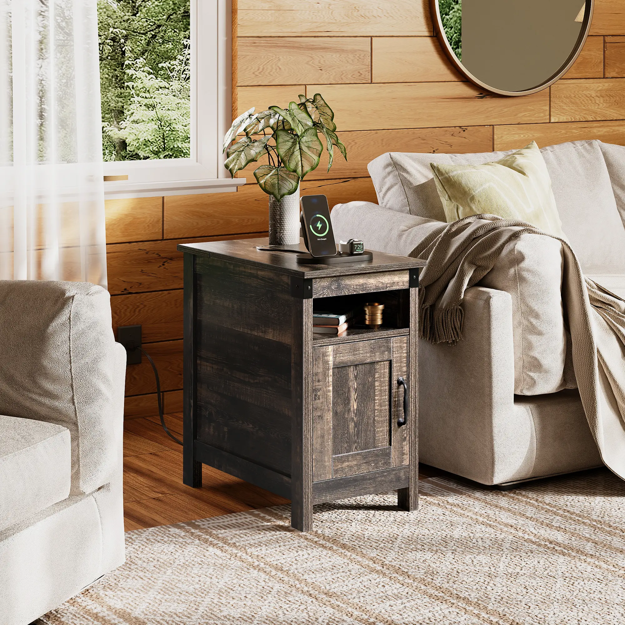 ·【Vintage Style】With its classic colors, this sofa side table with charging station blends perfectly into any decor and easily creates a stylish vibe in your home.