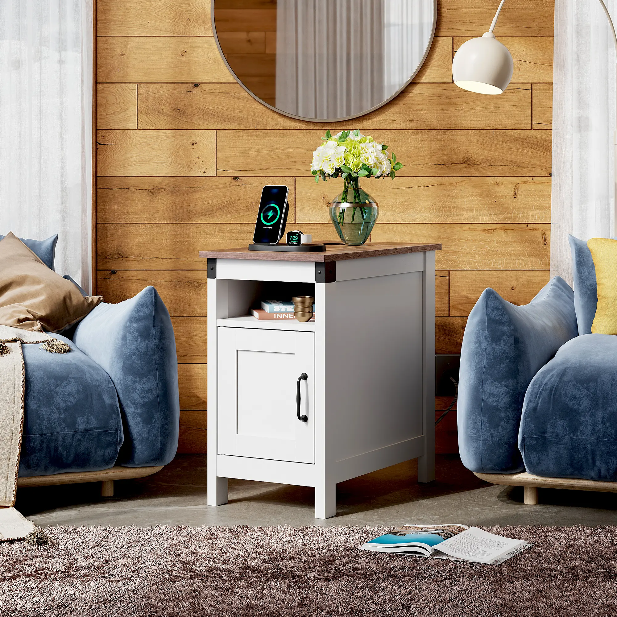 ·【Easy-Charging】This small farmhouse end table has 2 AC outlets and 2 USB ports. The couch end table spacing is sufficient, which satisfies you to use multiple plugs simultaneously, keeping power at your fingertips and never worrying about charging when you use your electronic devices on the couch.
