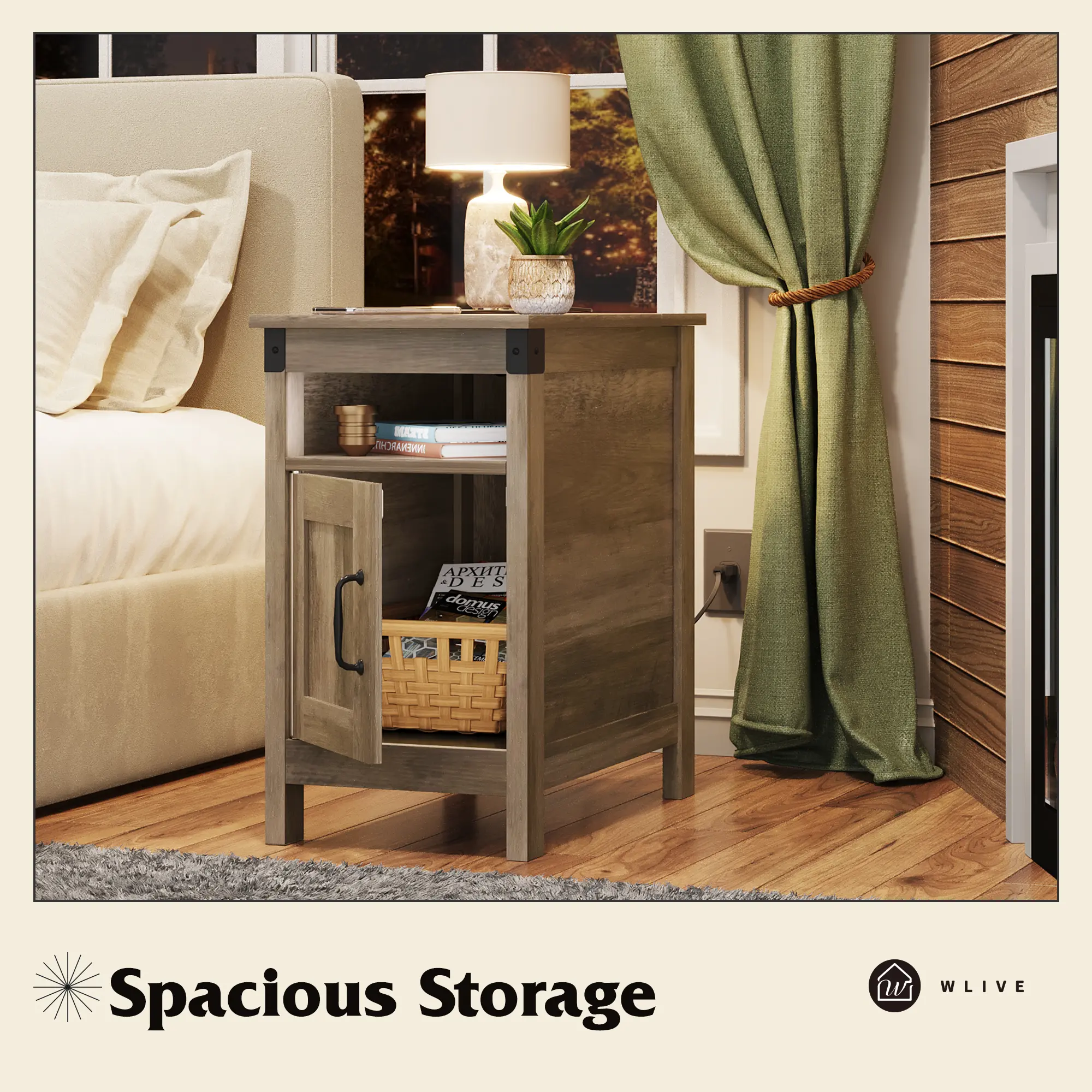 ·【Spacious Storage】Combining open-space storage and hidden storage, the small nightstand tabletop and middle space are more convenient for placing and accessing items; the living room end table hidden storage space with cabinet doors can hold large items and make the room look tidy while preventing dust.