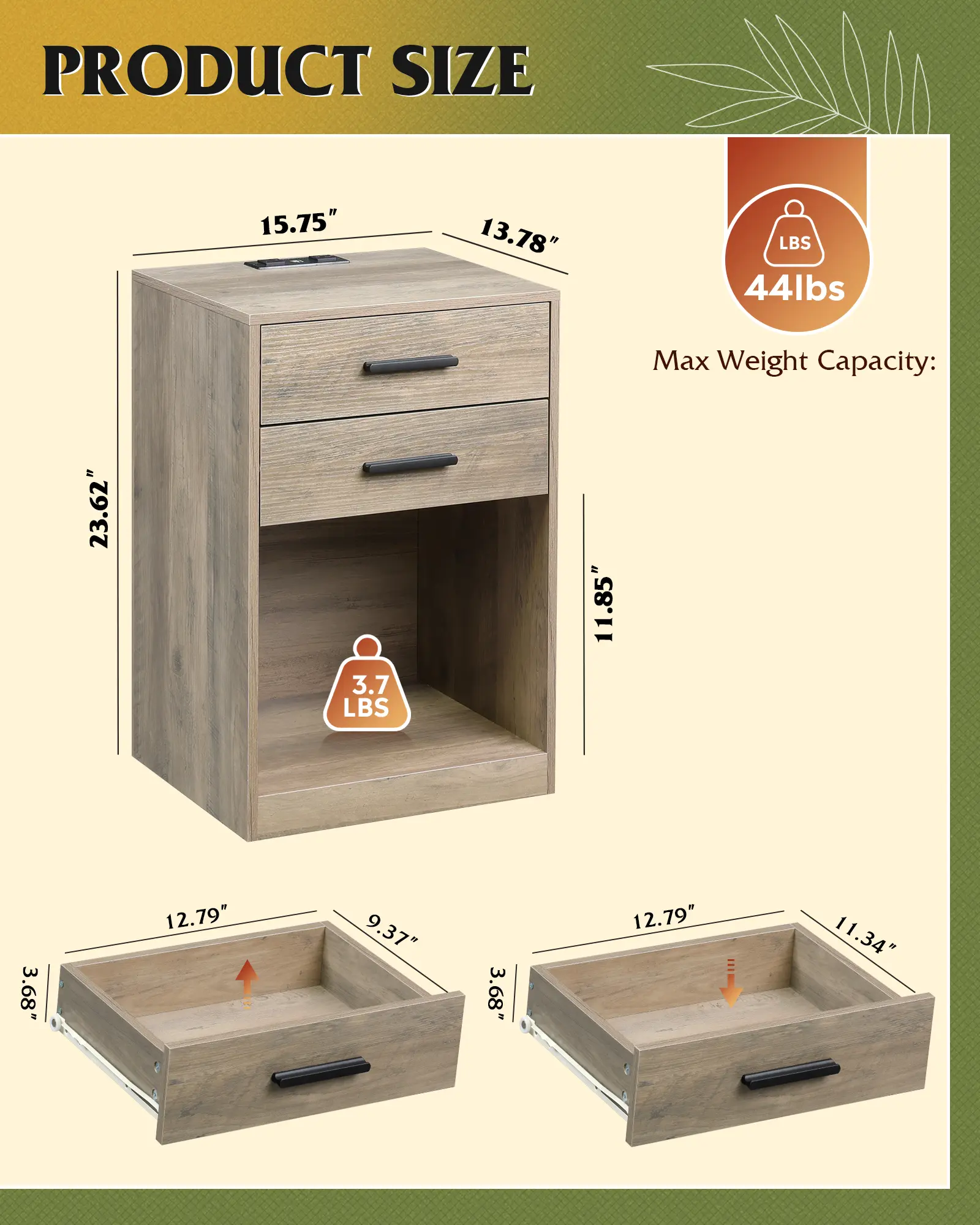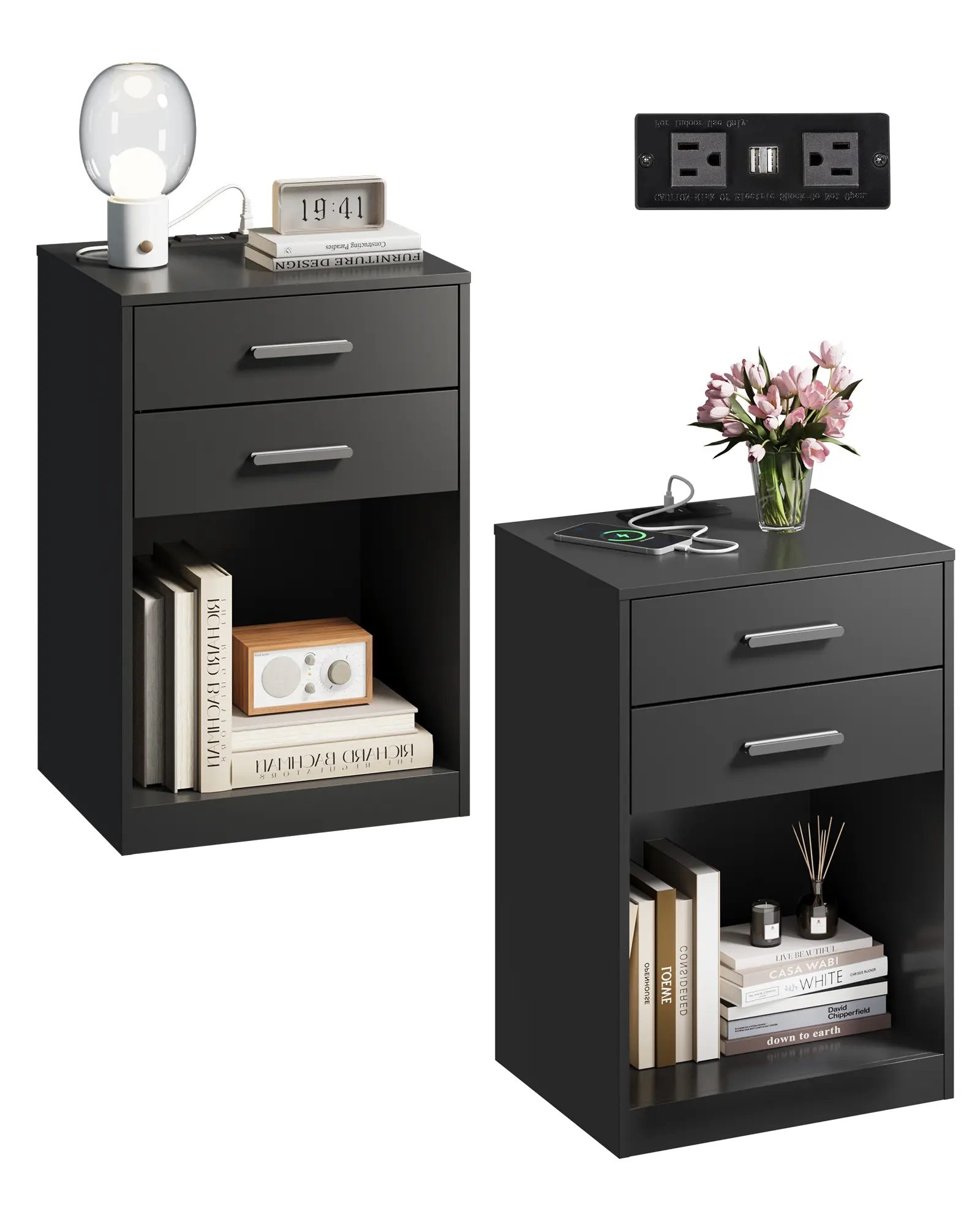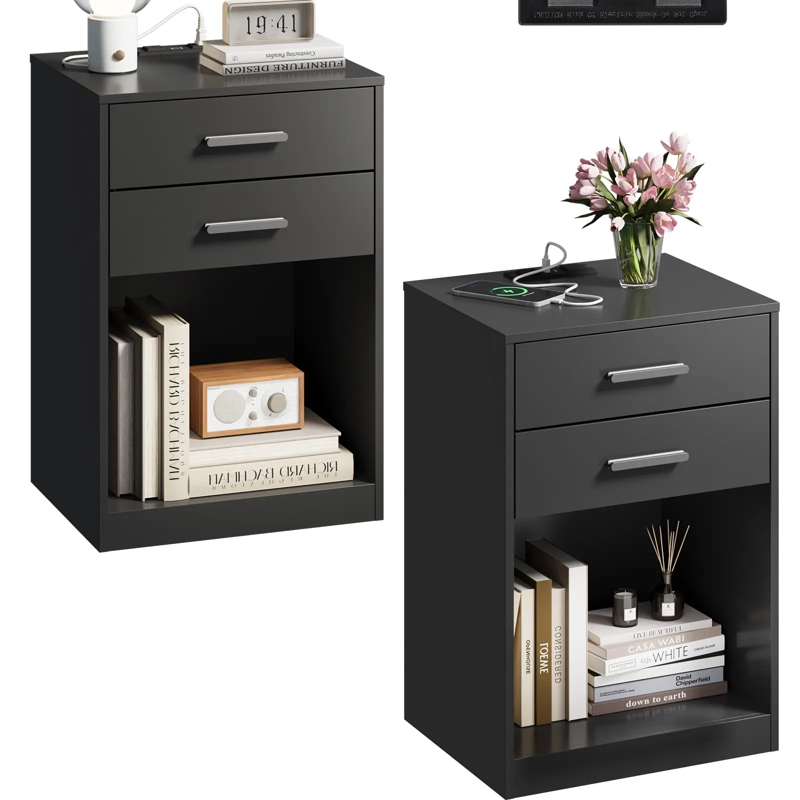 ·[Convenient Charging Station] This nightstand table set features 2 USB ports + 2 AC outlets per table for simultaneous device charging. The smart power layout prevents cord clutter—perfect for phones, laptops, and bedtime essentials.