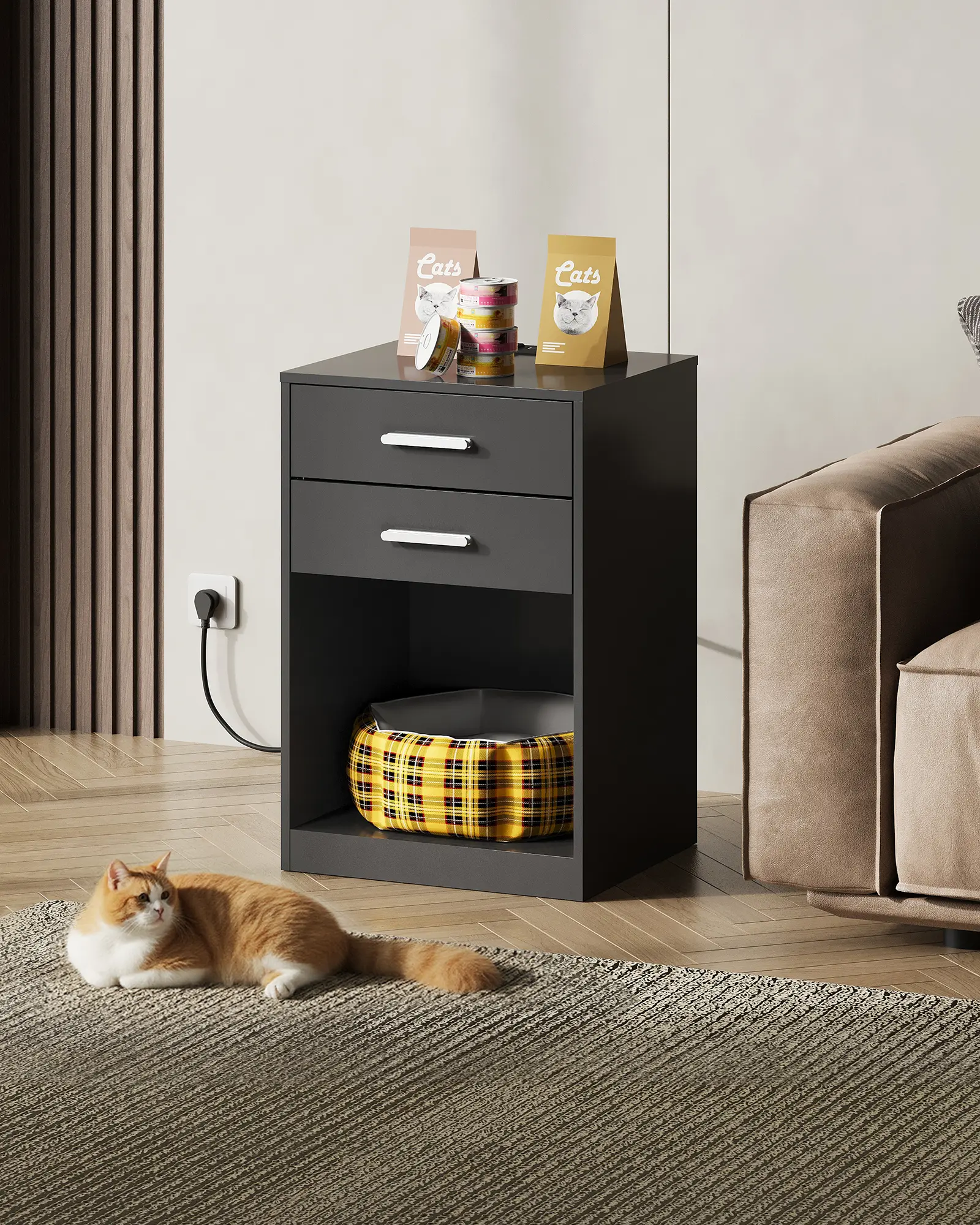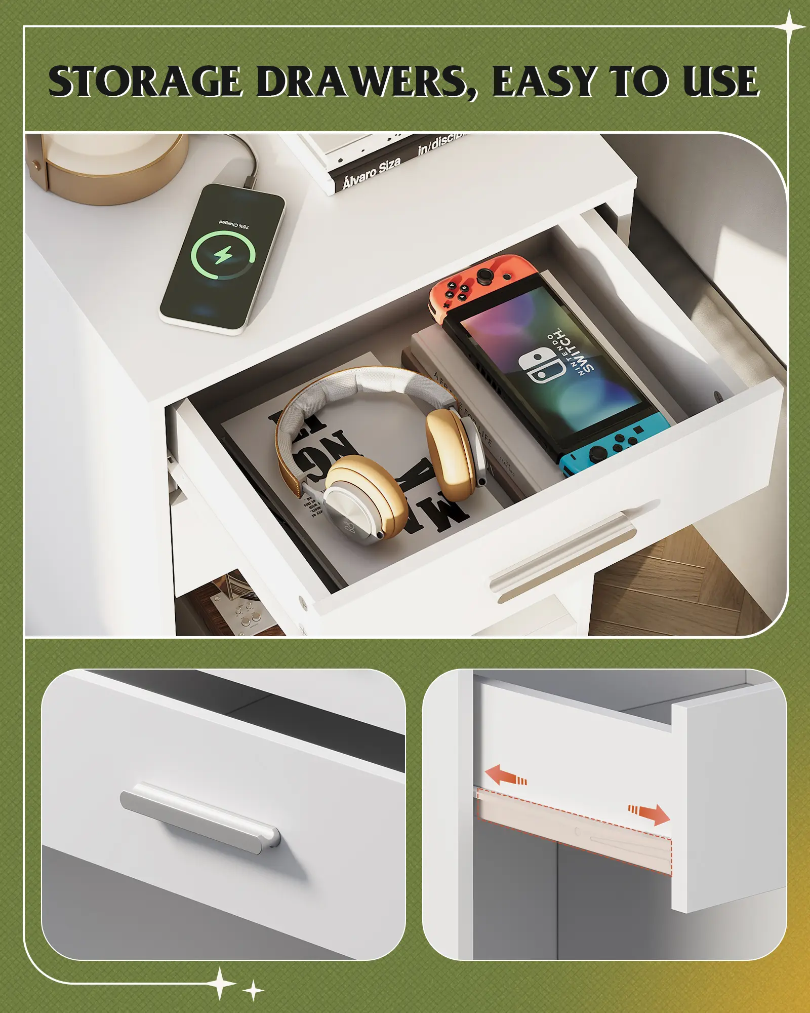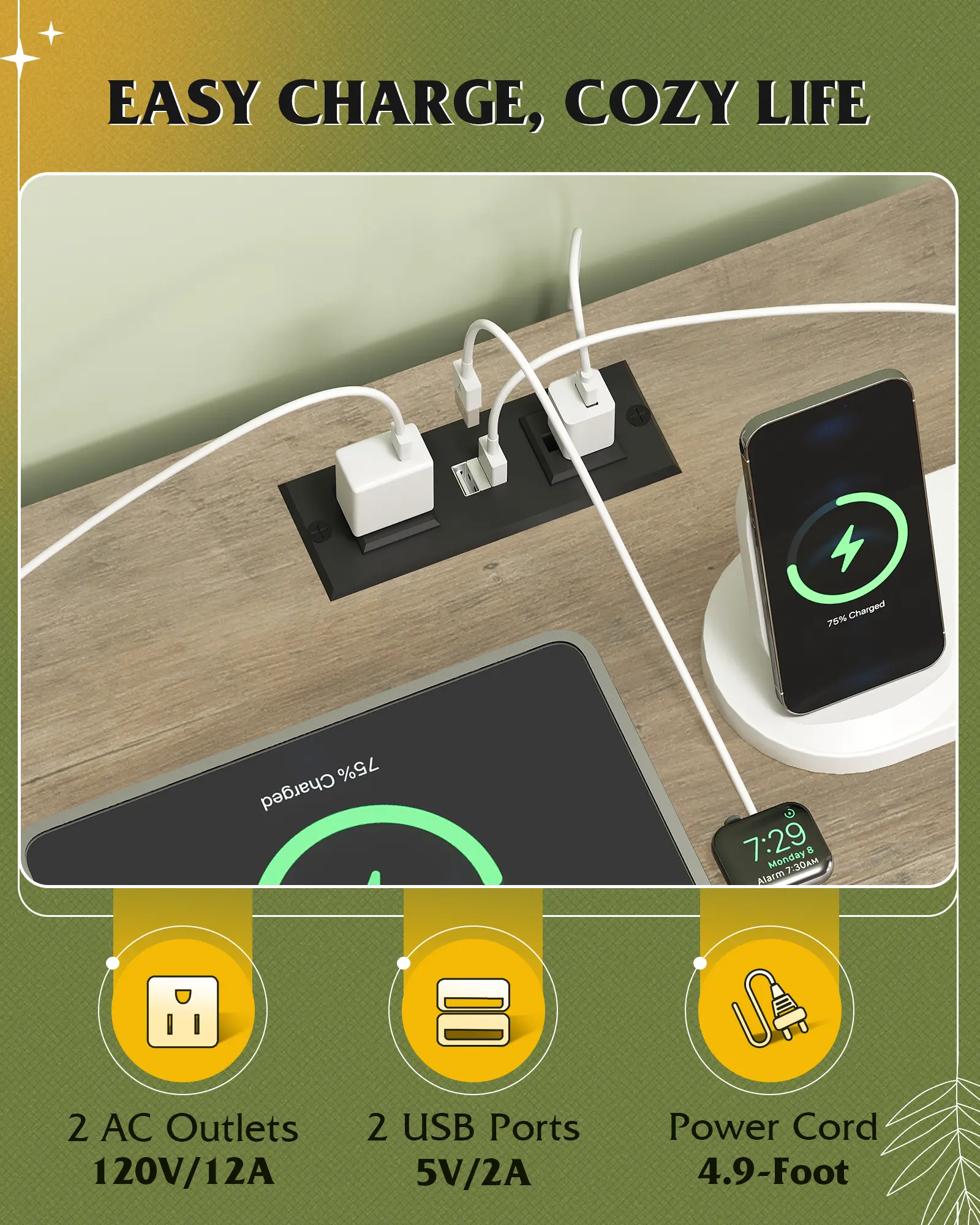 ·[Convenient Charging Station] This nightstand table set features 2 USB ports + 2 AC outlets per table for simultaneous device charging. The smart power layout prevents cord clutter—perfect for phones, laptops, and bedtime essentials.