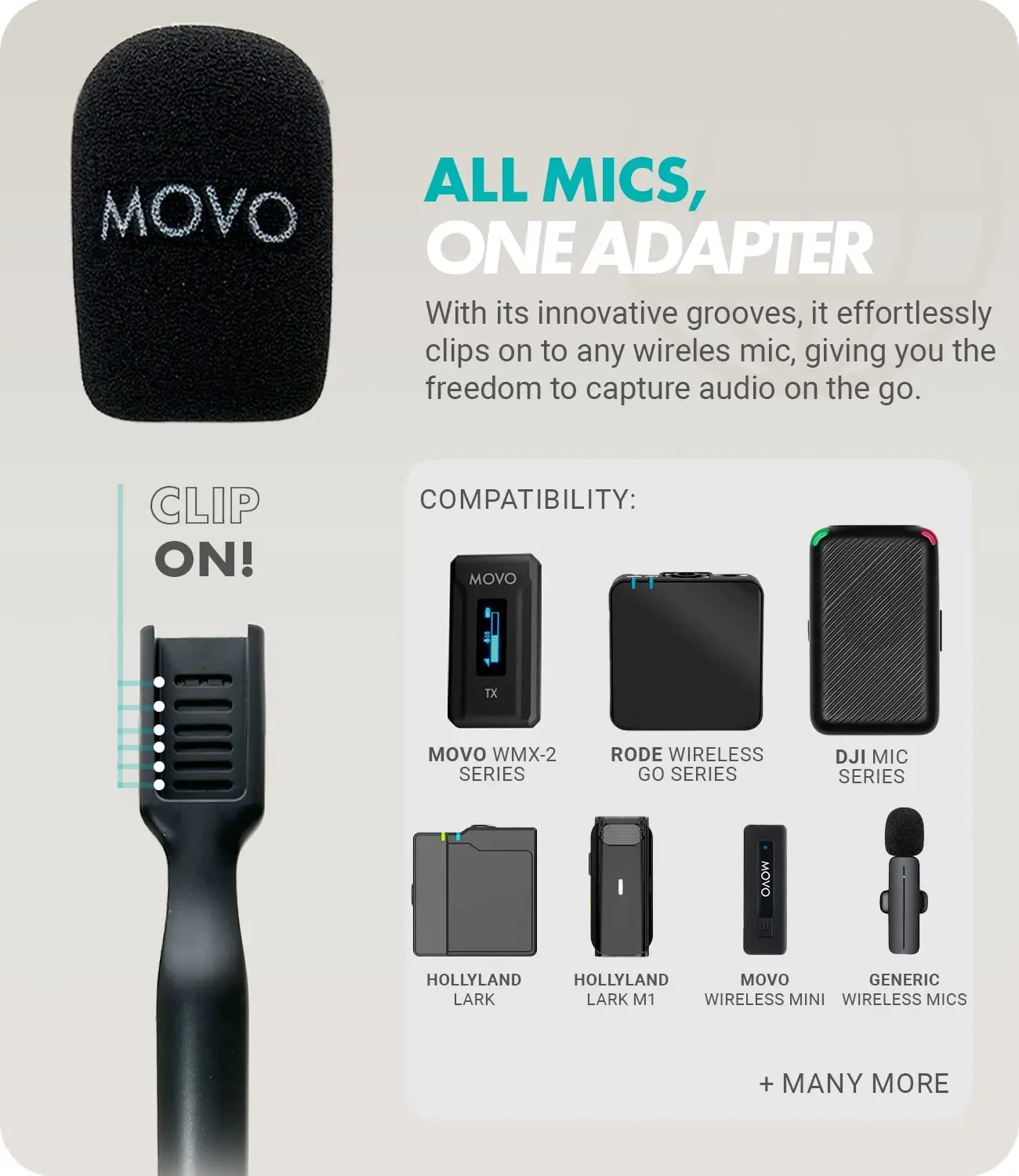 Ever struggled holding a wireless mic steady during interviews or recordings? The Movo WMX-HM handheld adapter transforms your wireless microphone into a comfortable, professional handheld device instantly. Whether you’re using a compact mic like the DJI Mic or a larger Rode Wireless system, this adapter fits them all thanks to its universal compatibility and smart grooves for secure attachment. It’s crafted from lightweight ABS plastic, so you can carry it anywhere without fatigue. Plus, it includes three foam windscreens and a mini windscreen to cut down wind and background noise, making your audio crisp and clear no matter where you record. Inside the box, you get the handheld adapter itself and the set of windscreens, along with a handy 1/4 inch thread adapter for mounting on stands or tripods. Whether you’re capturing interviews, podcasts, or on-the-go audio, the WMX-HM elevates your sound quality and protects your smartphone setup. Ready to upgrade your recording game? Grab the WMX-HM and make every audio moment sound professional and hassle-free!
