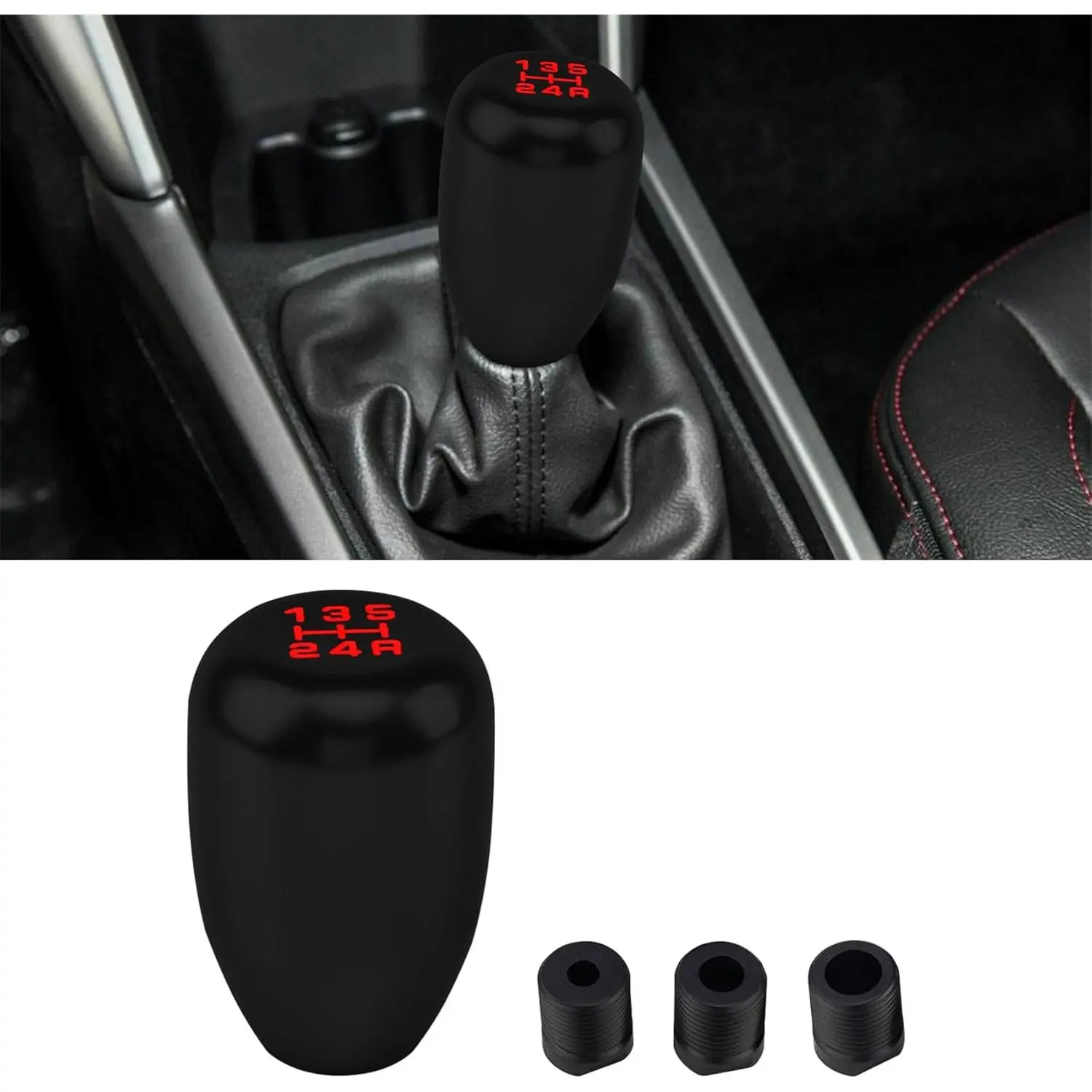 WOAOW Car Gear Shift Knobs, Manual Transmission Shift Knob, 5 Speed Car Stick Shift Knob with Adapter, Aluminum Alloy Shift Lever Knob, Universal Automatic Car Accessories for Manual Car Adjustable Gears Foot Pedal
