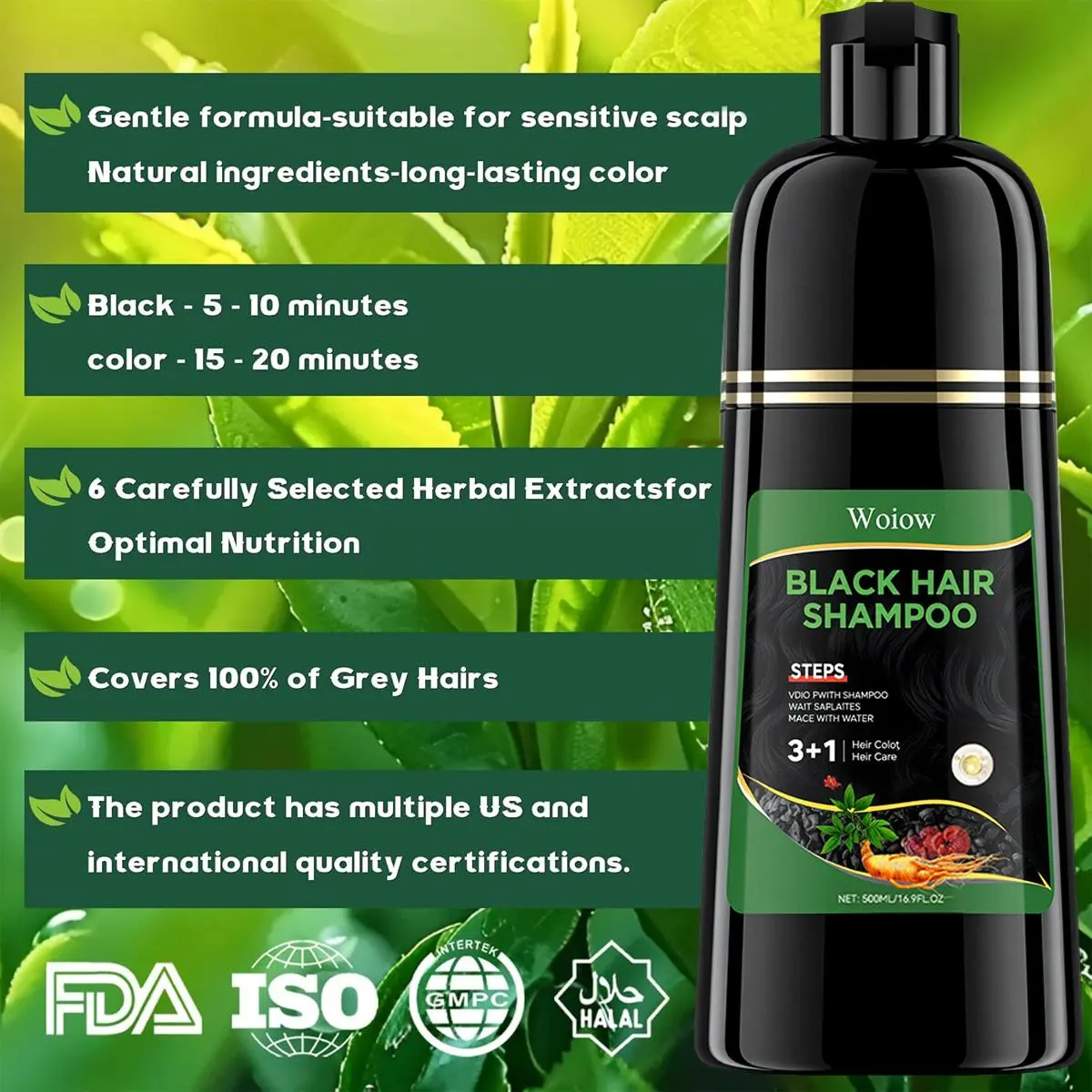 Woiow Black Hair Dye Shampoo 3 in 1