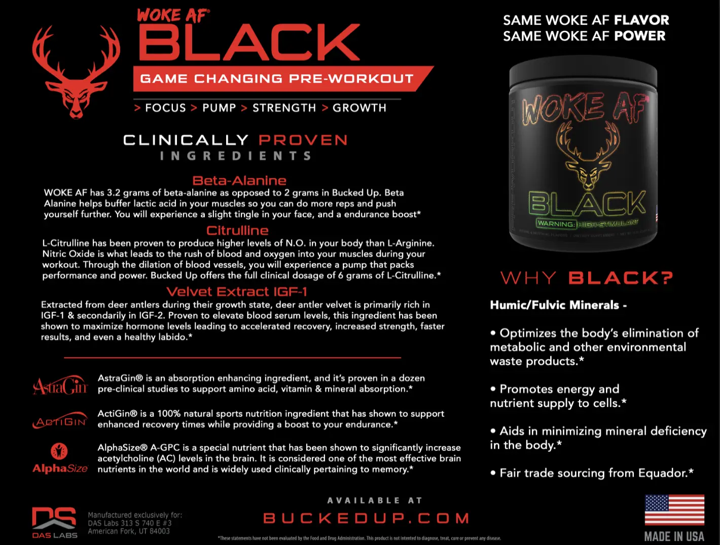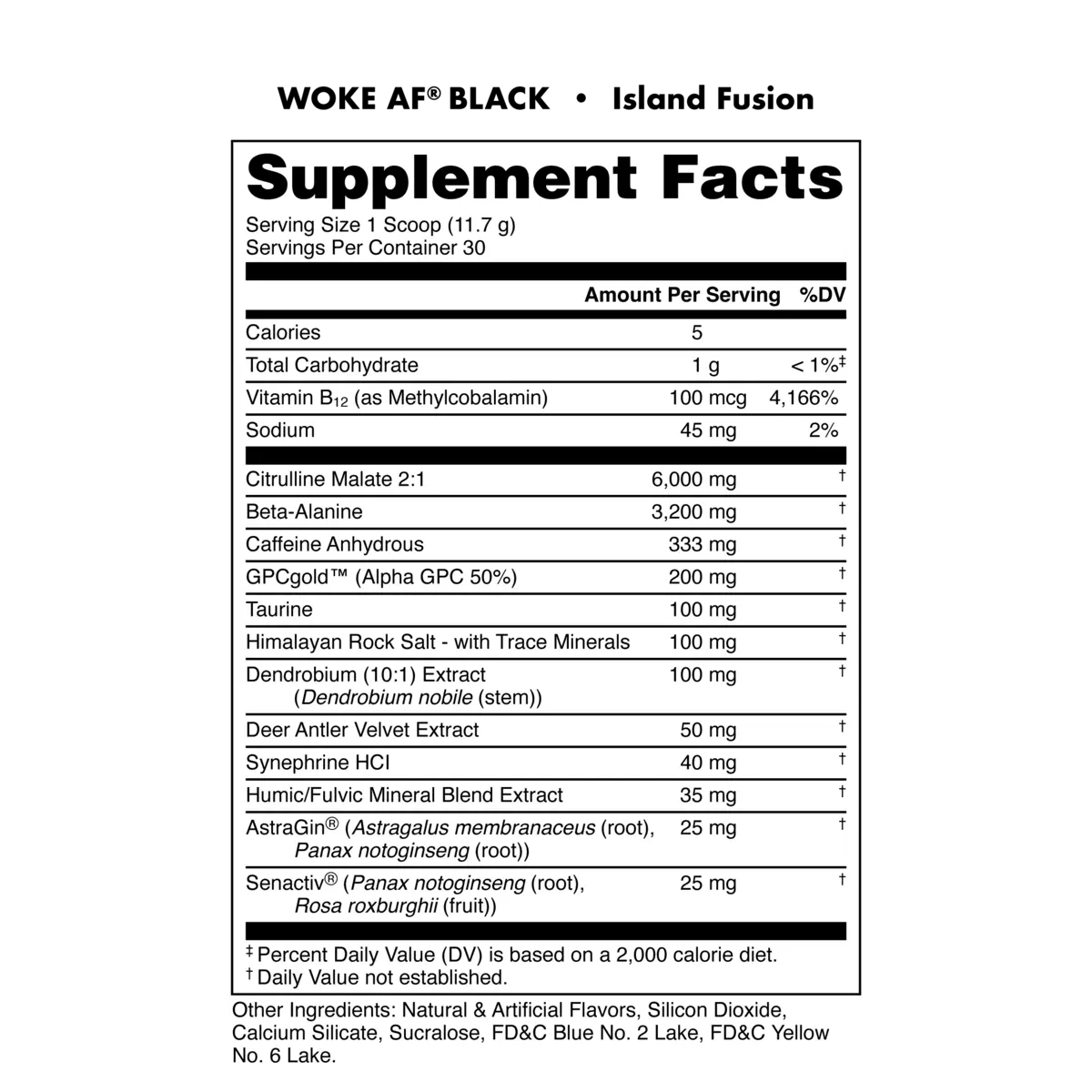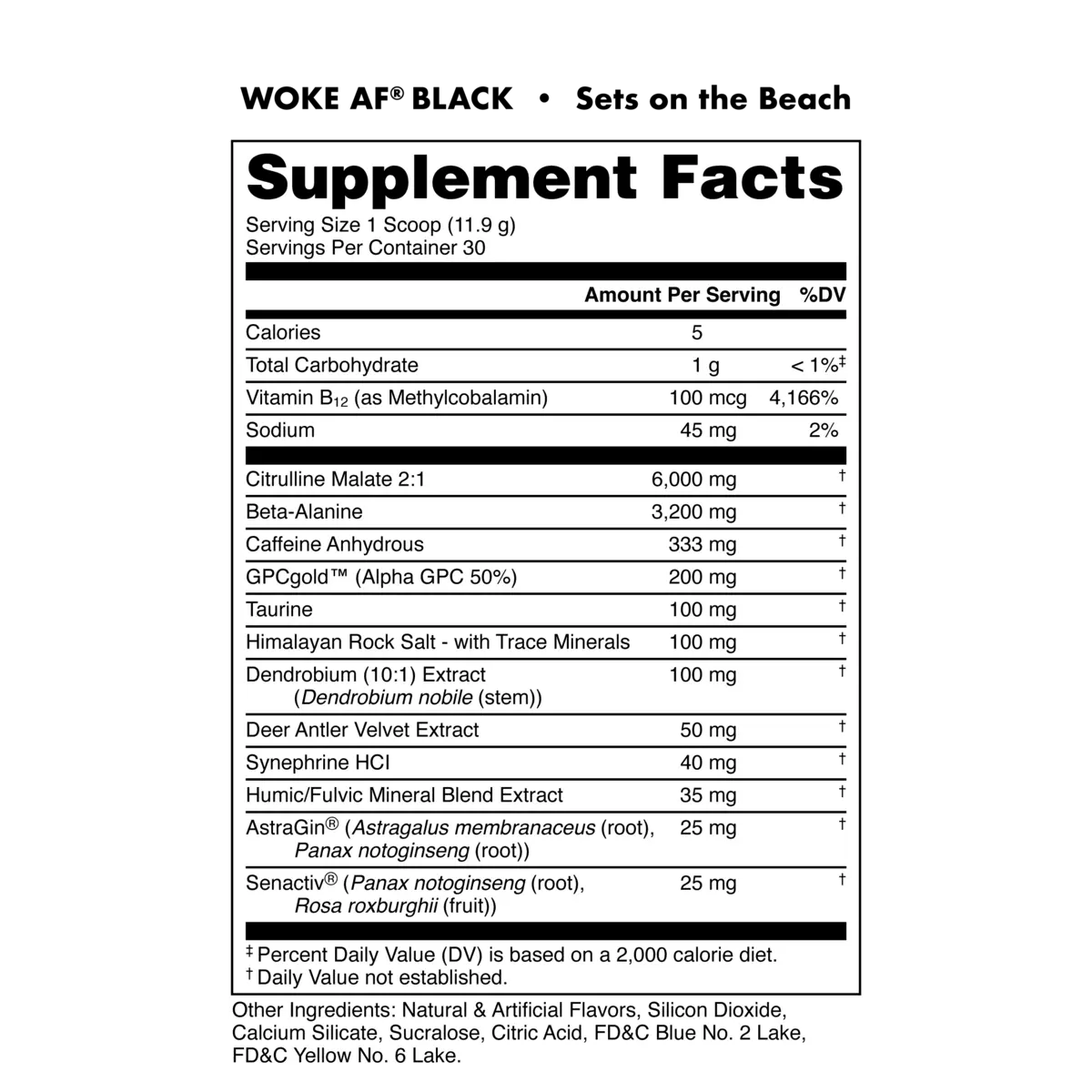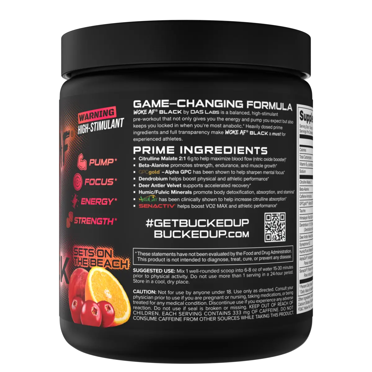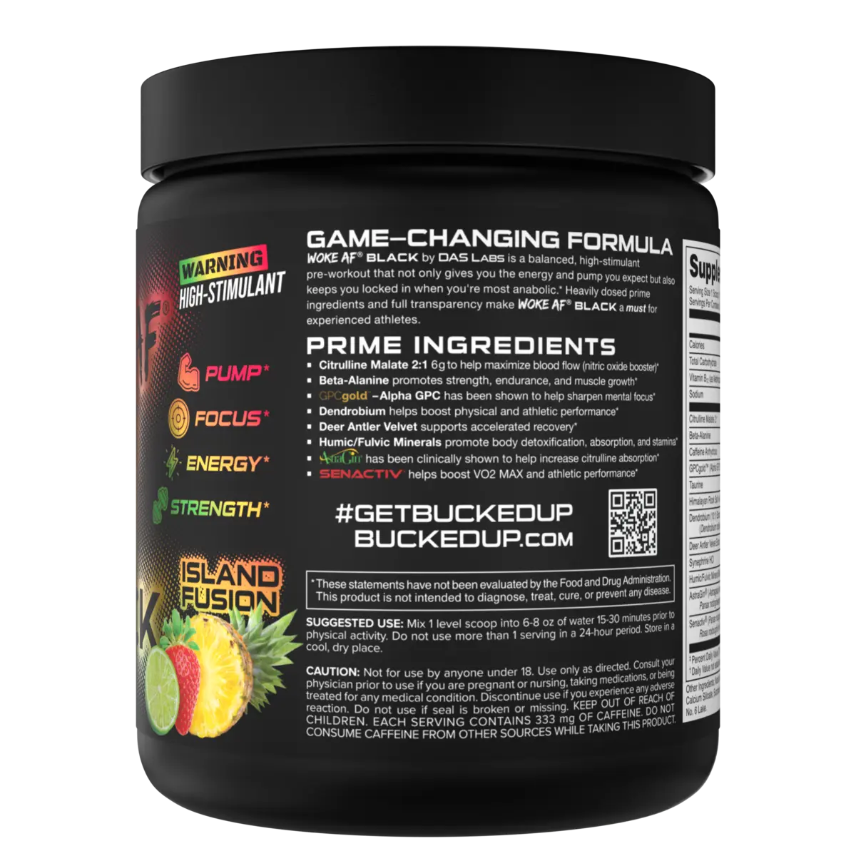 Woke AF BLACK is not for beginners. This stim-heavy dose has been formulated for those with only the strongest of tolerances. Stay WOKE through the most intense workouts, study sessions, or work shifts with three stimulants to energize and support cognitive function.*
