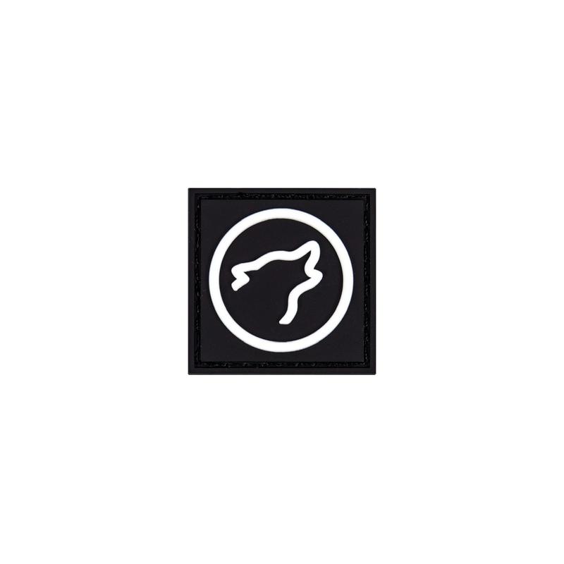 Wolf Head Logo stitched rebber patch with black background and white logo.