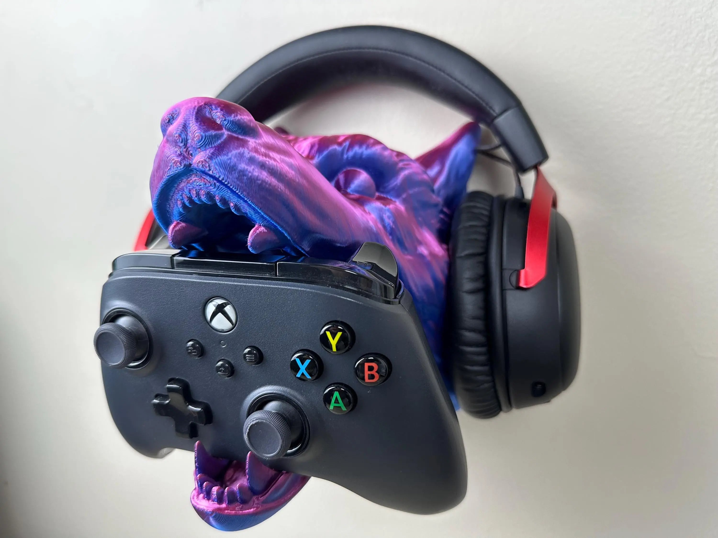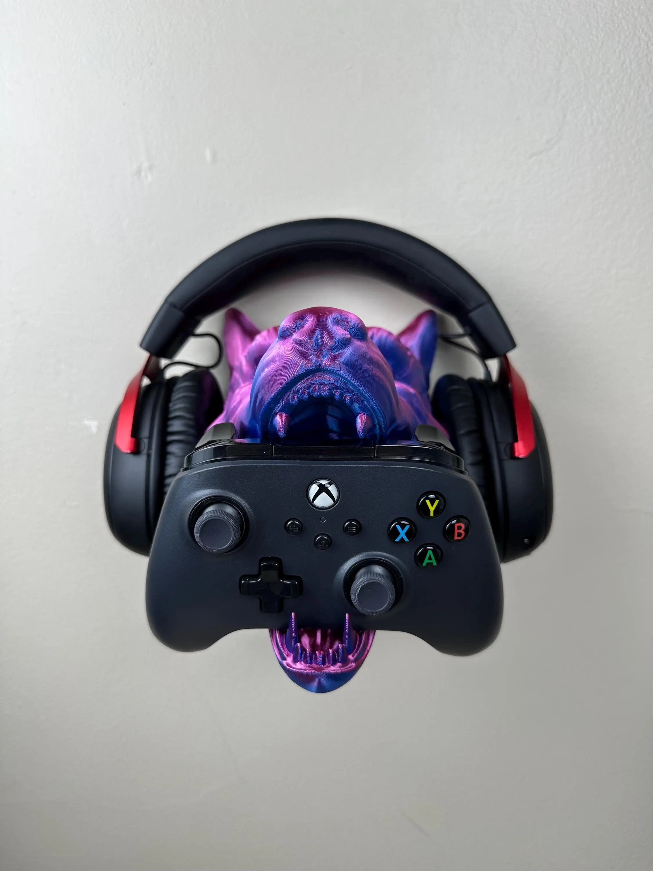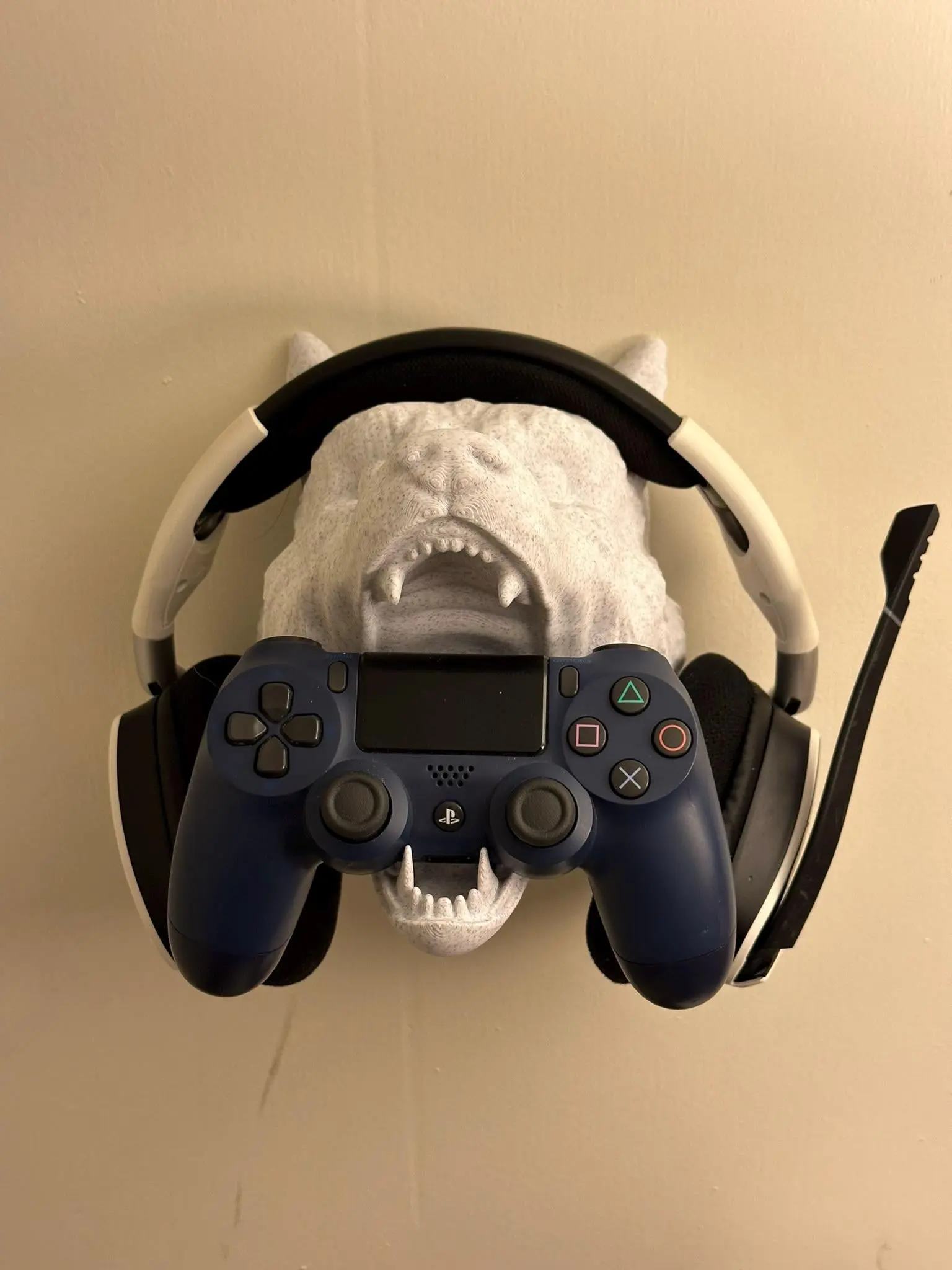 Enhance your gaming setup with this Wolf Headphone Controller Holder Stand, designed to display your gear uniquely and stylishly. Elevate your controller display with pride and add a touch of elegance to your gaming sanctuary.