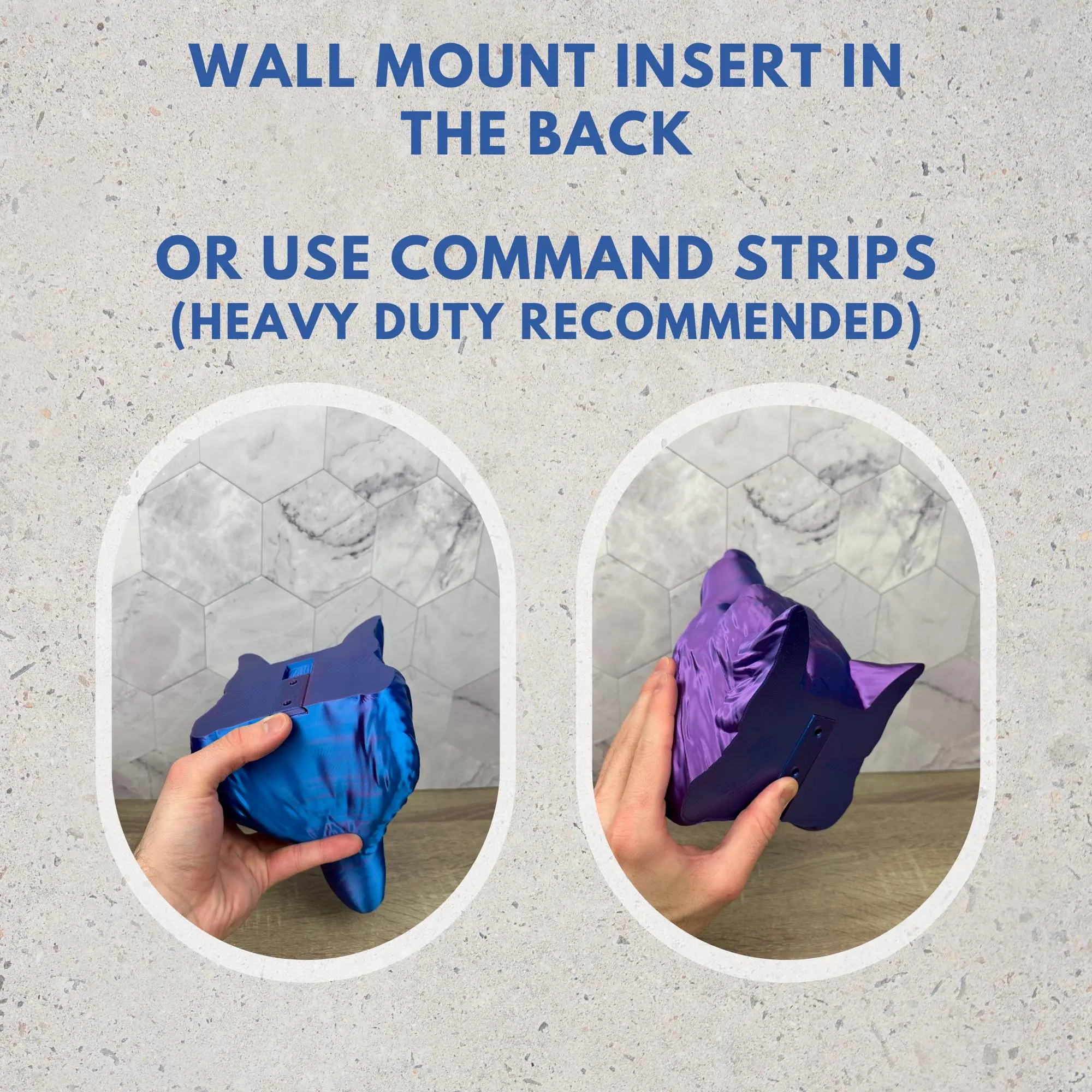 Two hanging options: it with the included screw hole slot or 3M Command Strips. I'd recommend heavy duty strips if you want to hold both a headset and controller on it, but as long as the installation is correct it is do-able.