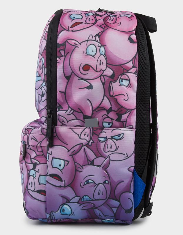Space Junk Wolf Pigs Backpack. The ultimate school backpack. Measuring 18.5 inches, taller than the standard backpack. Large enough to hold all of your books and supplies. Super durable and multi-functional with many compartments. 360-degree reflectors to keep you safe!InteriorInternal 8-inch mesh zippered pocket. • Internal mesh zippered pocket for supplies and additional storage. • Internal divider with padded storage of the inside of the back wall for a tablet, laptop, and other smart devices. • Top pocket for easy access for keys, wallet, hand sanitizer, etc... Interior• Backpack Dimensions - 18.5" High, 12.5" Wide and 7" Deep. • Two 7-inch side pockets. • Branded SPACE JUNK metal zipper pulley. • Large side pockets for water bottles and other items. • Large front zippered cargo pocket. • 360-degree reflectors on front, sides, and back patches for visibility and safety. • S-Shaped ergonomic design with padded adjustable shoulder straps to protect back and shoulders. • Fully ergonomic back padding panel design, made from breathable, sponge like fabric for increased comfortably. • 100% Polyester. Imported.