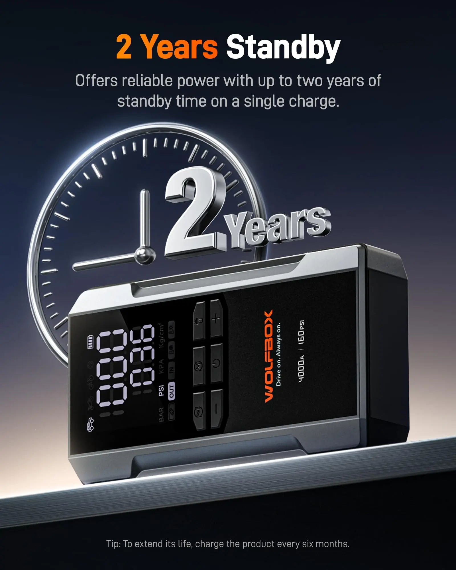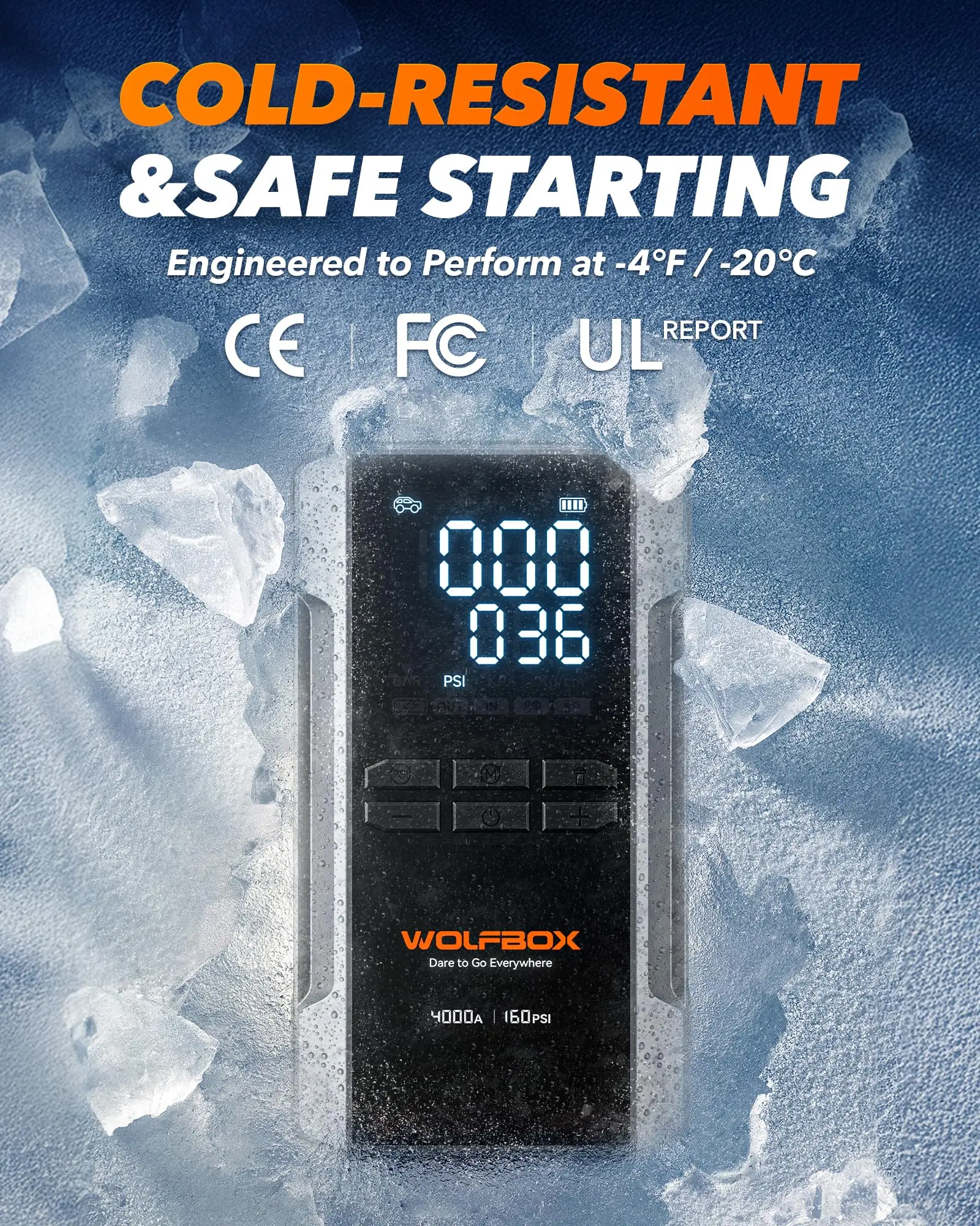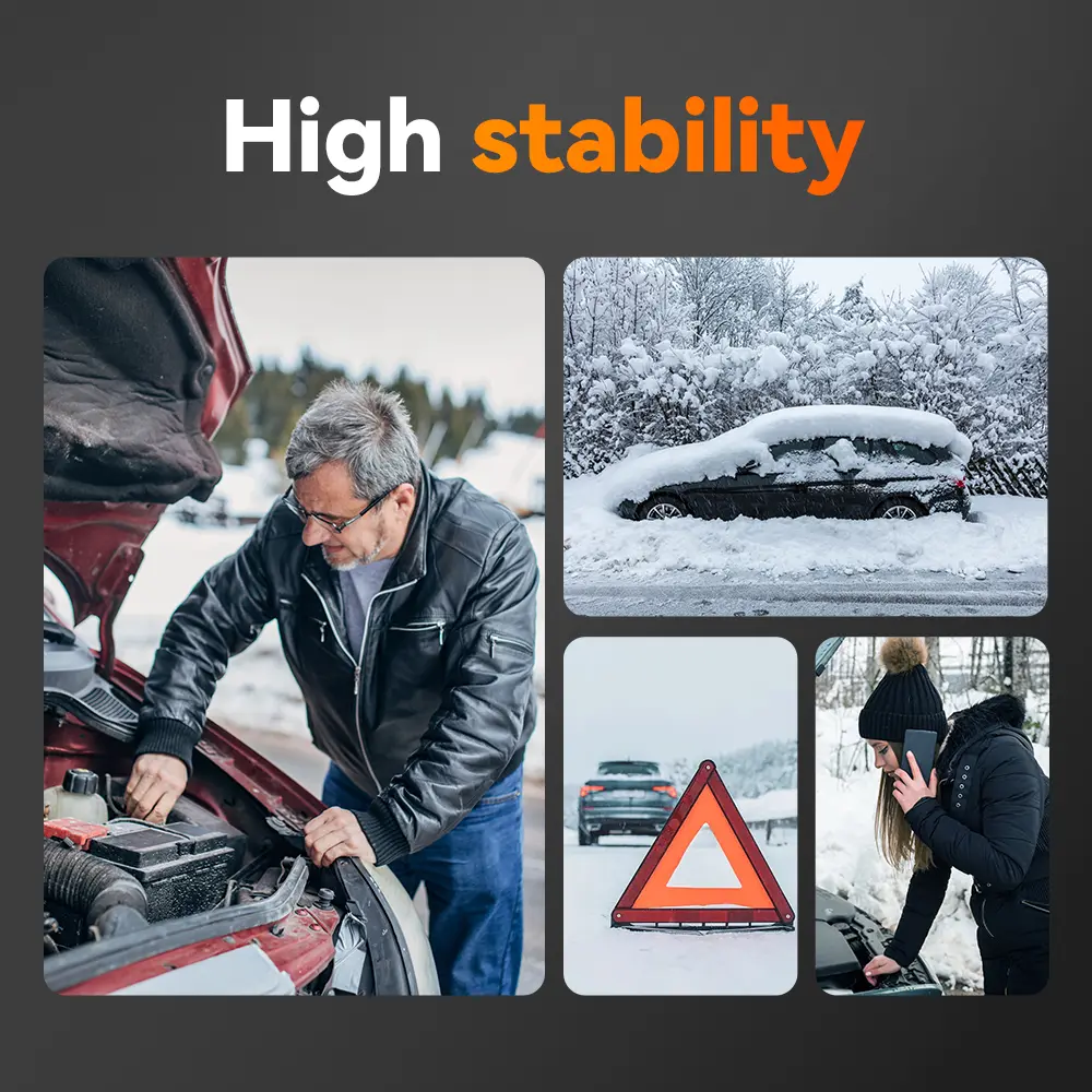 Rated IP64 for durability, this portable jump starter with air compressor operates reliably down to -4°F. Built with 10 types of intelligent protections, it’s engineered to withstand harsh environments and keep you safe on the road.
