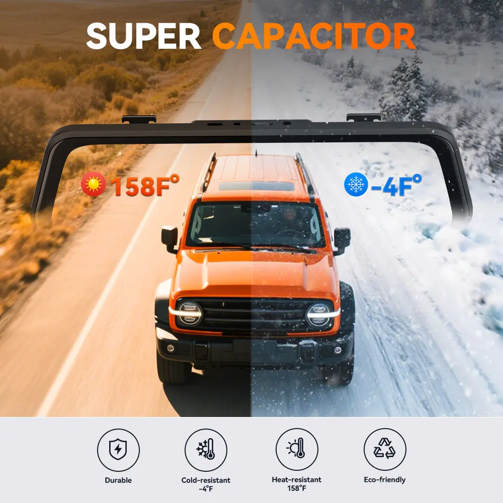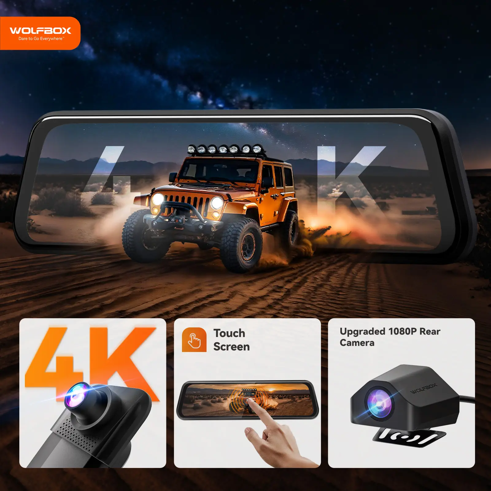 The WolfBox M40lite 4K Mirror Dash Cam features a 10" touch screen for easy navigation. It offers front and rear dash camera capabilities, ensuring comprehensive coverage. Perfect for drivers seeking a reliable dash cam solution.