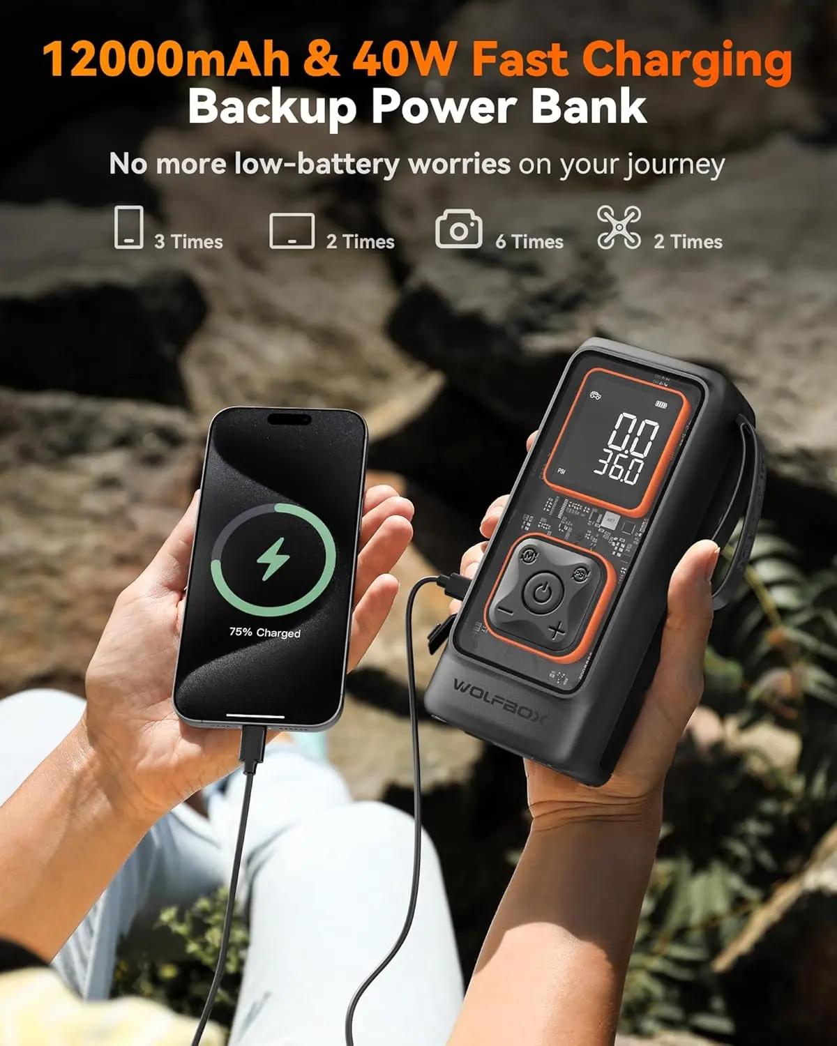 Enjoy a 24-month warranty and round-the-clock customer support for any product, installation, or usage questions. The charger is not included; the Wolfbox Charger ASIN is B0D6BFFNKC.