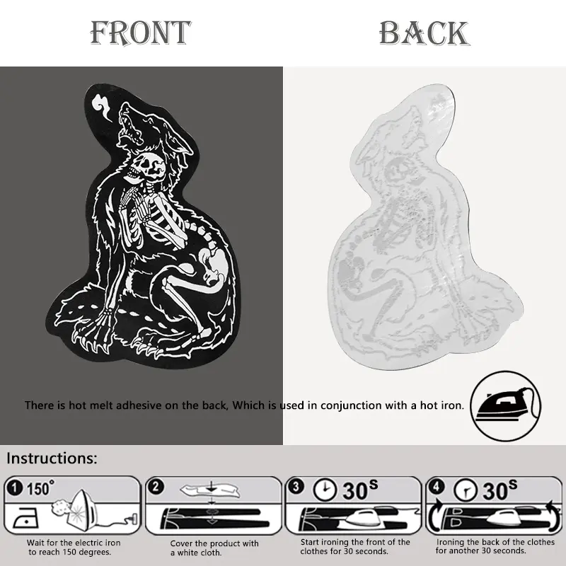 Wolfman Large Lightweight Fabric Patch, Self-Adhesive Iron-On Repair Patch for Clothes Jackets Bags Hats Accessories