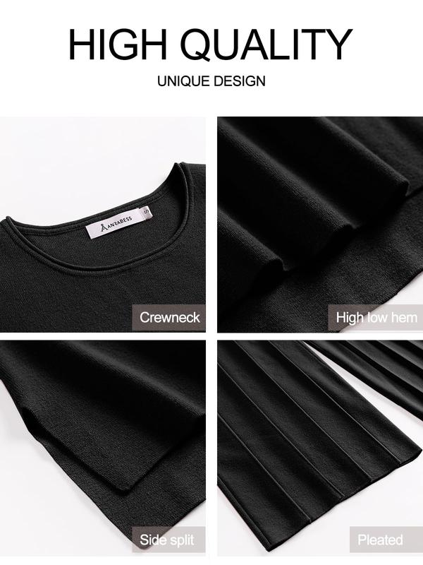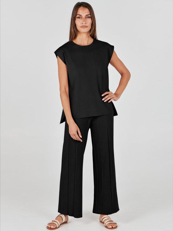·Design - The pullover top of this 2 piece lounge set features solid color, crewneck, short sleeve, splited high-low hemline, pull-on style. Pants are designed with comfy elastic waistband and knit wide leg. Keep you feeling confident and stylish for casual days.