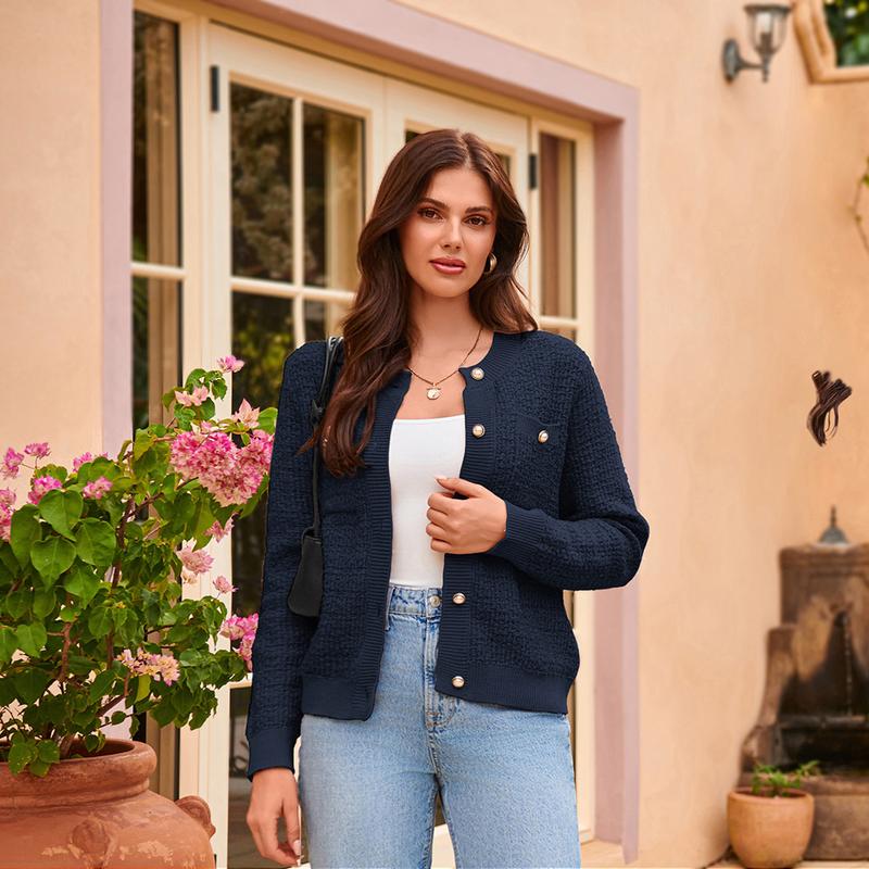 ·Features: This women's cardigan sweater features a flattering textured knit pattern, button placket, long sleeves, crew neck, two front patch pockets, and five functional buttons for added elegance. The classic knit cardigan is flattering on all body types.
