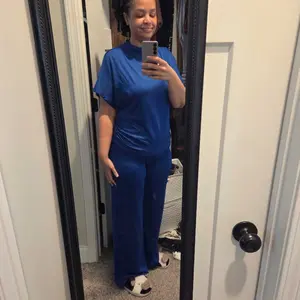 ·Comfortable Two Piece Design: This stylish two piece set consists of a half high neck short sleeve top and wide leg pants, offering a comfortable and free fit, perfect for everyday wear in the spring and summer.