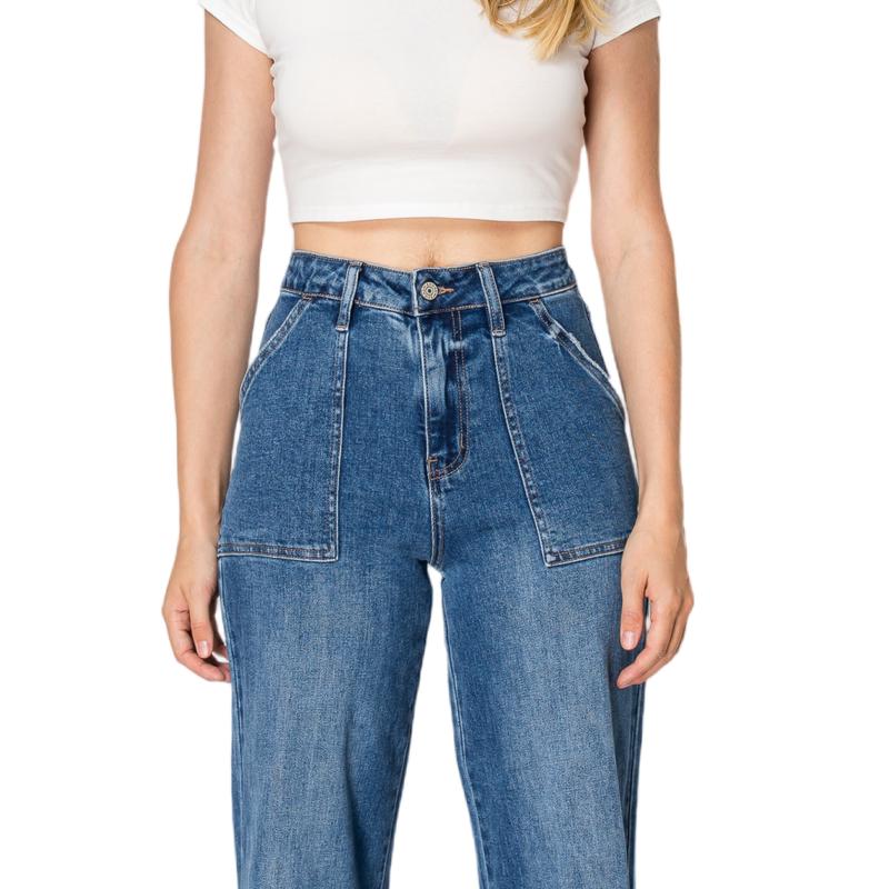 Vogatiques Women Stretchy High Rise Wide Leg Jeans with Utility Patch Pockets BYW8103 MinimalistVogatiques Women Stretchy High Rise Wide Leg Jeans with Utility Patch Pockets BYW8103 Minimalist